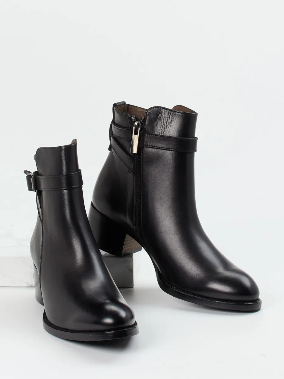 Diese Stiefeletten aus schwarzem Kalbleder vereinen klassische Jodhpur-Details mit moderner Linienführung – perfekt für puristische Looks im Büro oder Alltag.