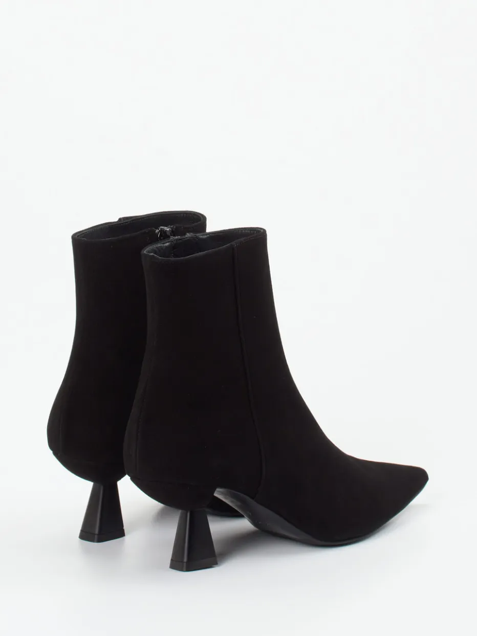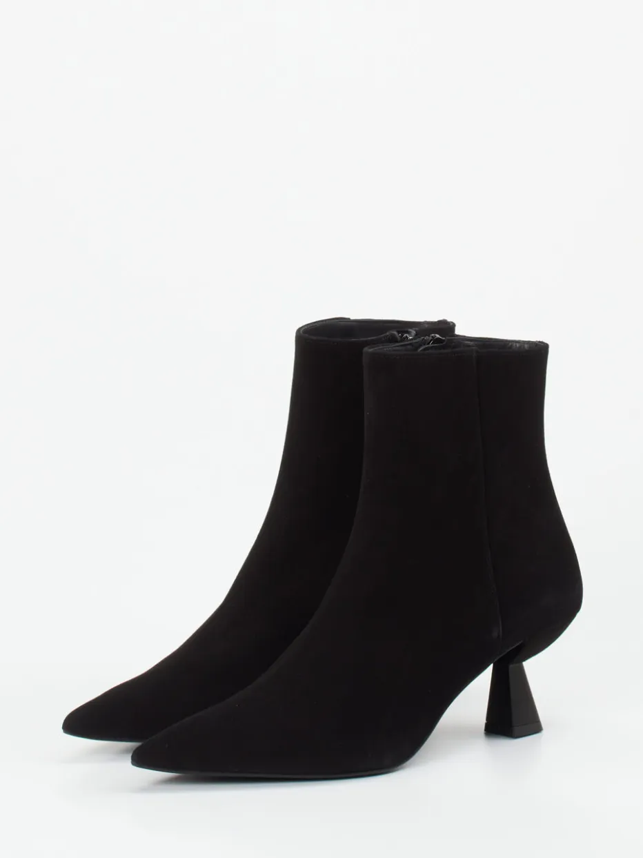 Dank hochwertigem Veloursleder und femininer Linienführung wirken diese Ankle Boots besonders edel. Der skulpturale Absatz verleiht ihnen eine moderne Anmutung mit klassischem Anspruch.
