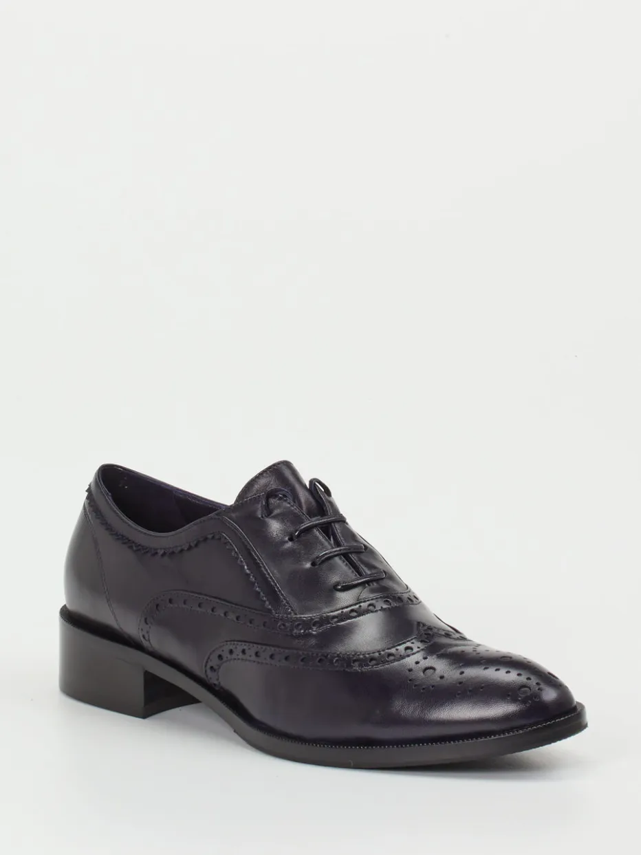 Dieser Brogue vereint feinstes Lammleder mit klassischer Lochverzierung und ist stilistisch an den maskulinen Heritage-Look angelehnt – modernisiert für den femininen Alltag.