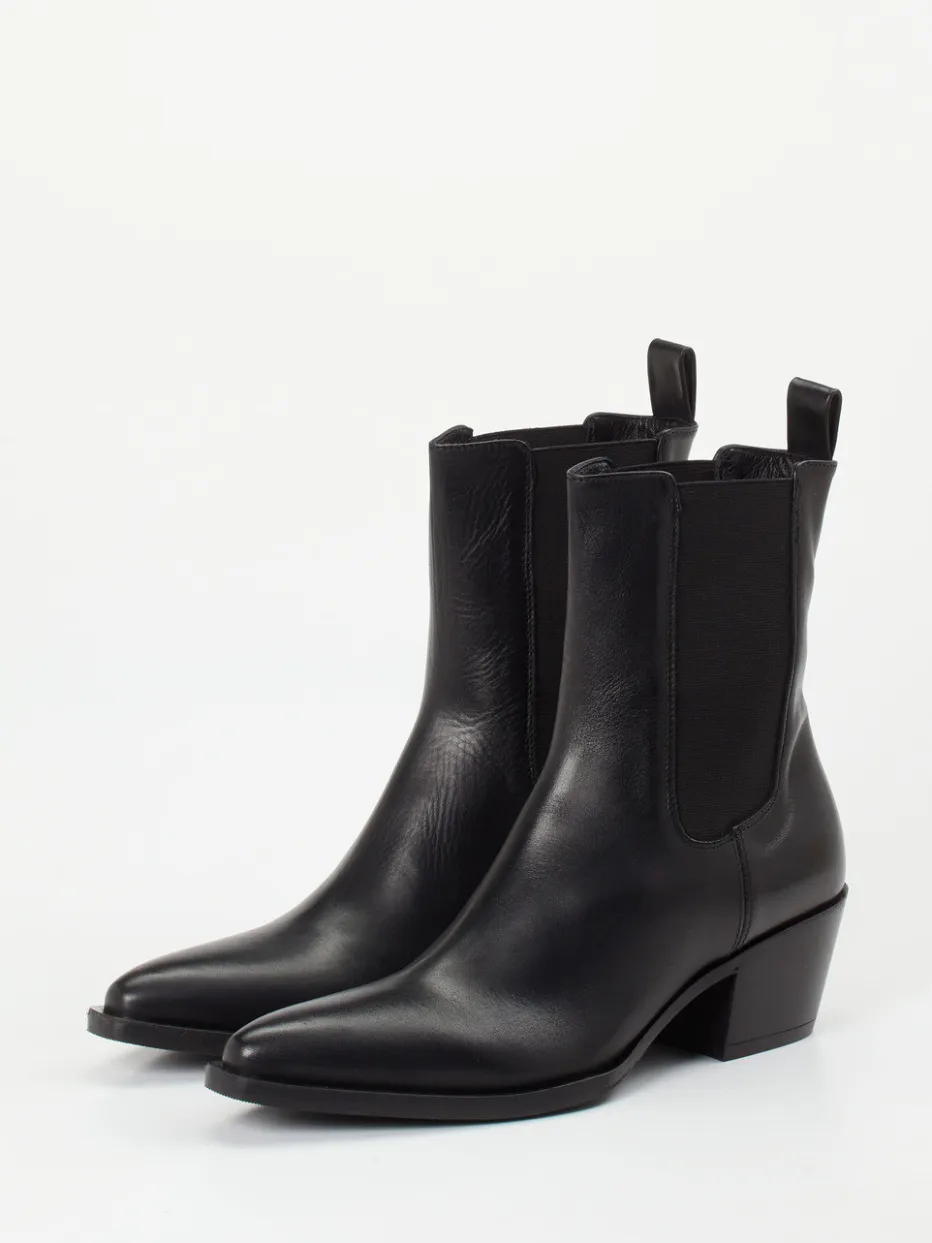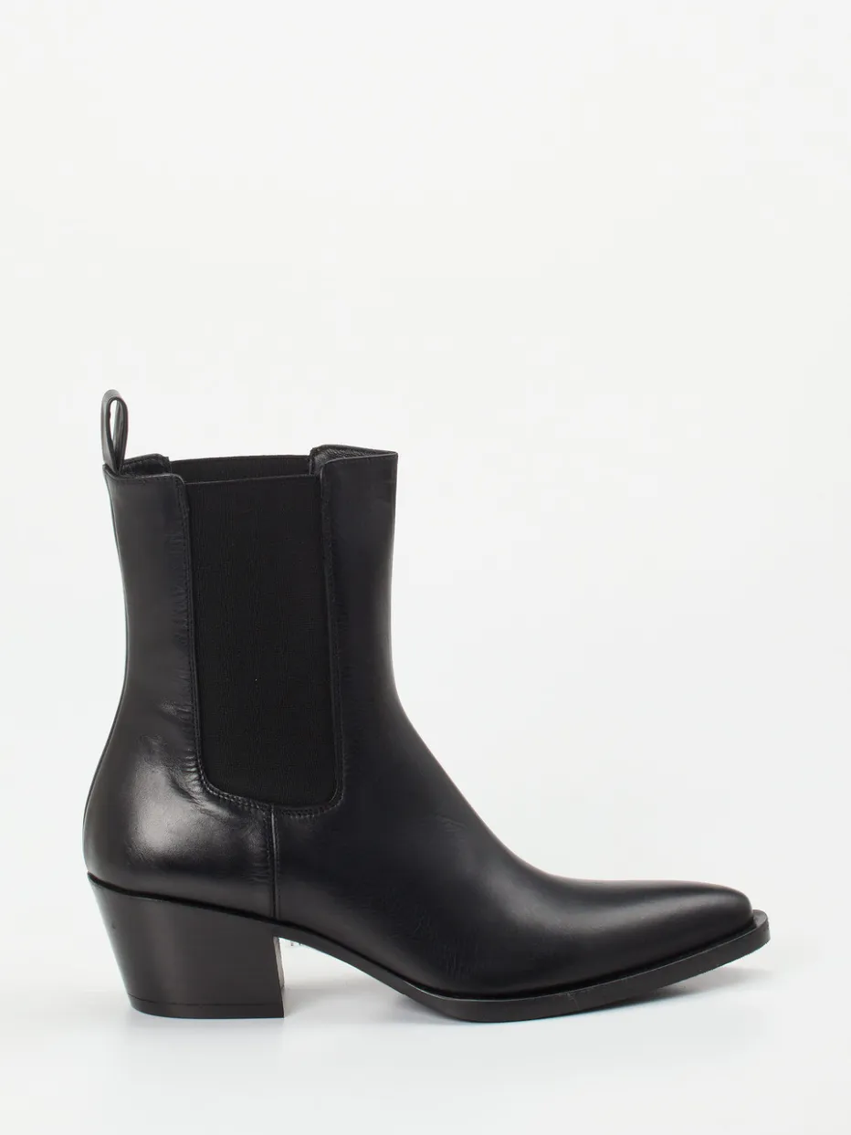 Diese Stiefelette verbindet hochwertiges Kalbleder mit puristischer Formensprache und einem dezenten Western-Flair. Ideal für stilbewusste Kombinationen im Alltag und Business.