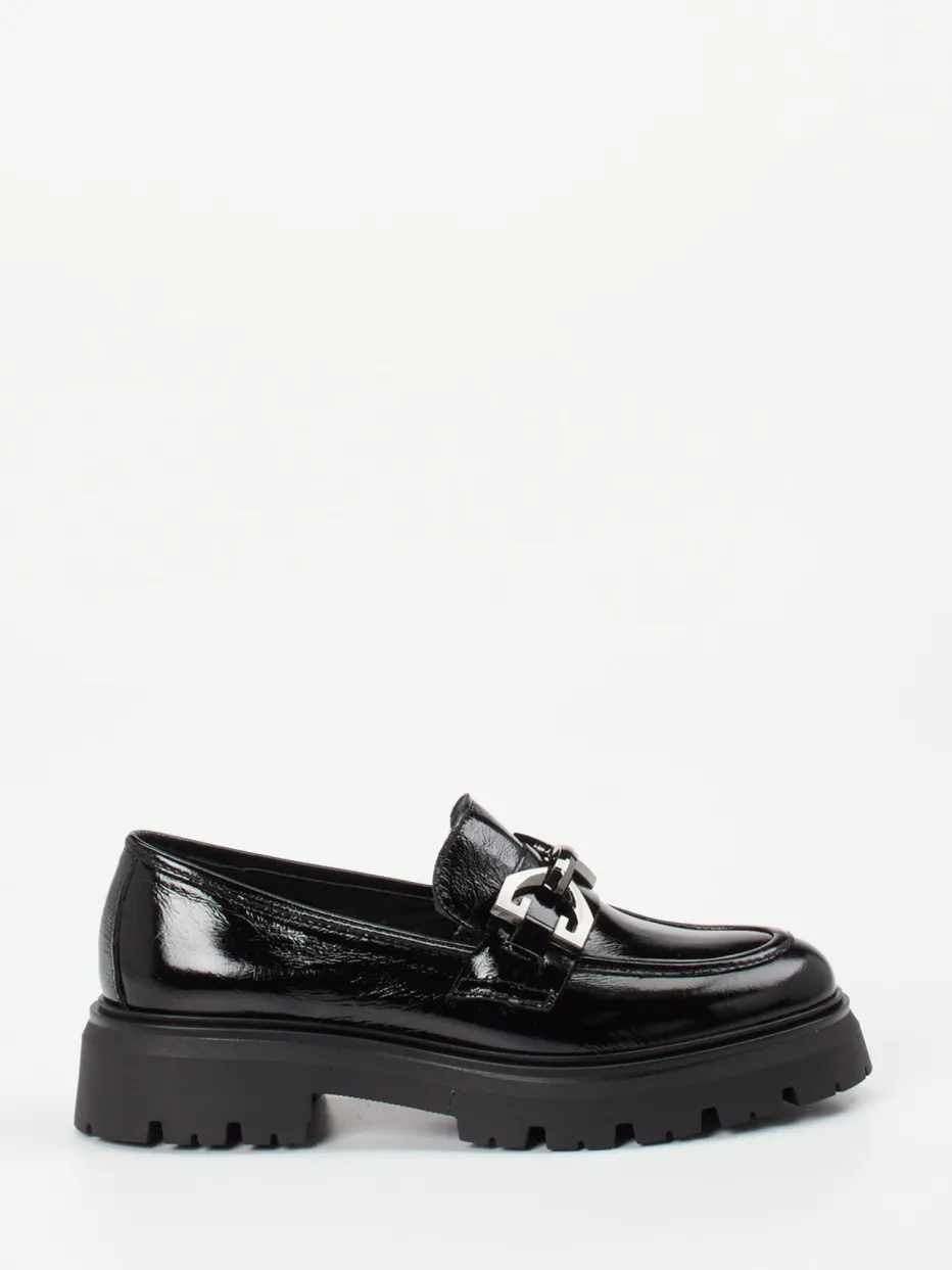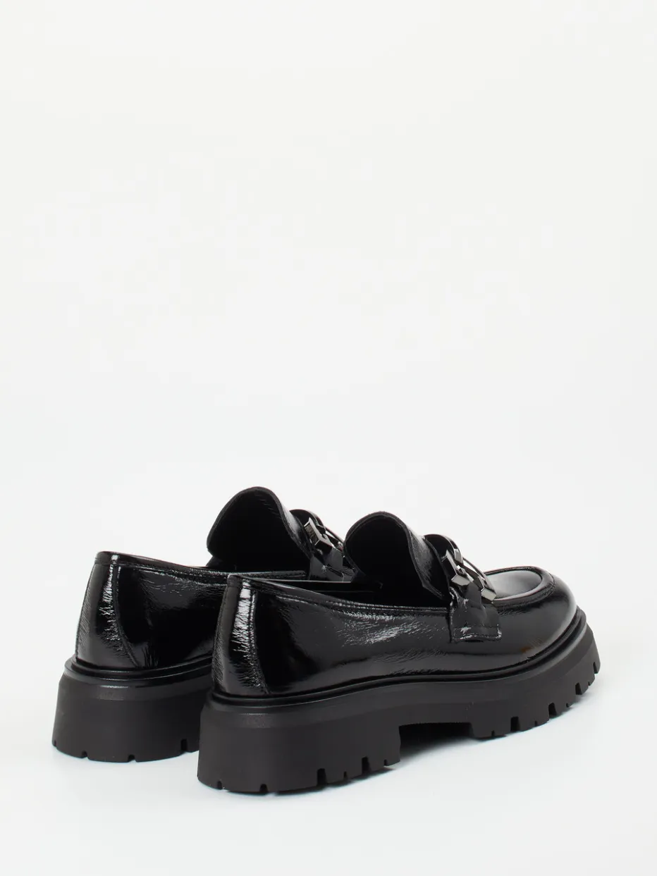 Dieser Chunky-Loafer vereint glänzendes Lackleder mit minimalistischer Silhouette und setzt dank markanter Trensengarnitur ein stilvolles Statement für Business und Alltag.