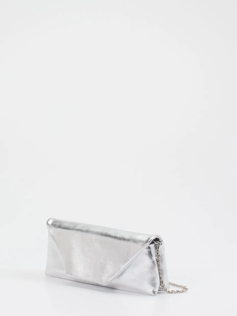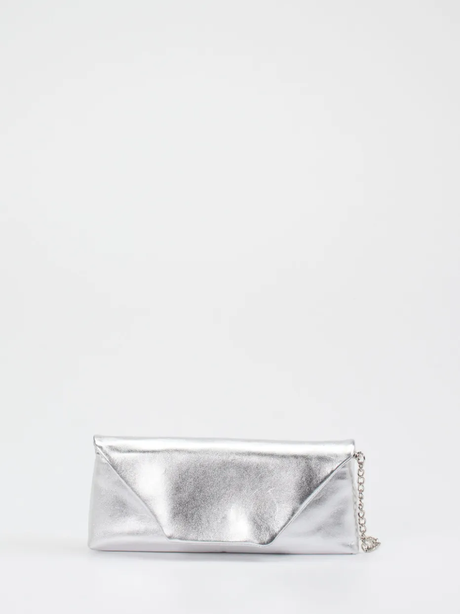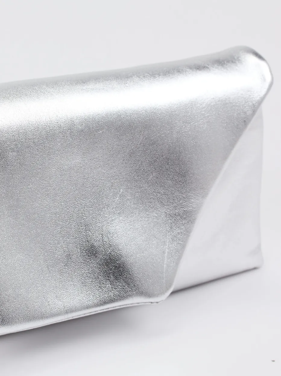 Die silberfarbene Clutch besticht durch minimalistisches Design, edle Glanzoptik und wandelbare Tragemöglichkeiten. Ein stilvolles Accessoire für moderne Abendlooks.