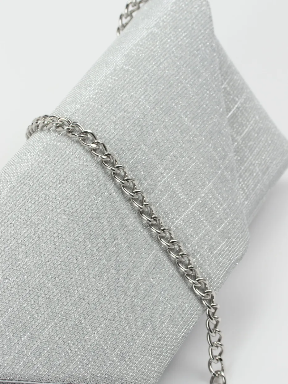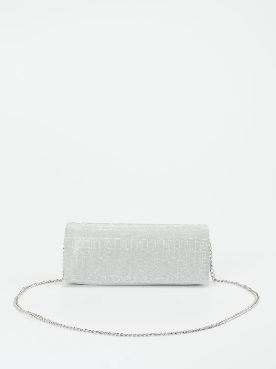 Diese elegante Clutch verbindet minimalistisches Design mit stilvollem Glitzereffekt für besondere Anlässe. Die feine Kette und klare Form unterstreichen ihre festliche Ästhetik.