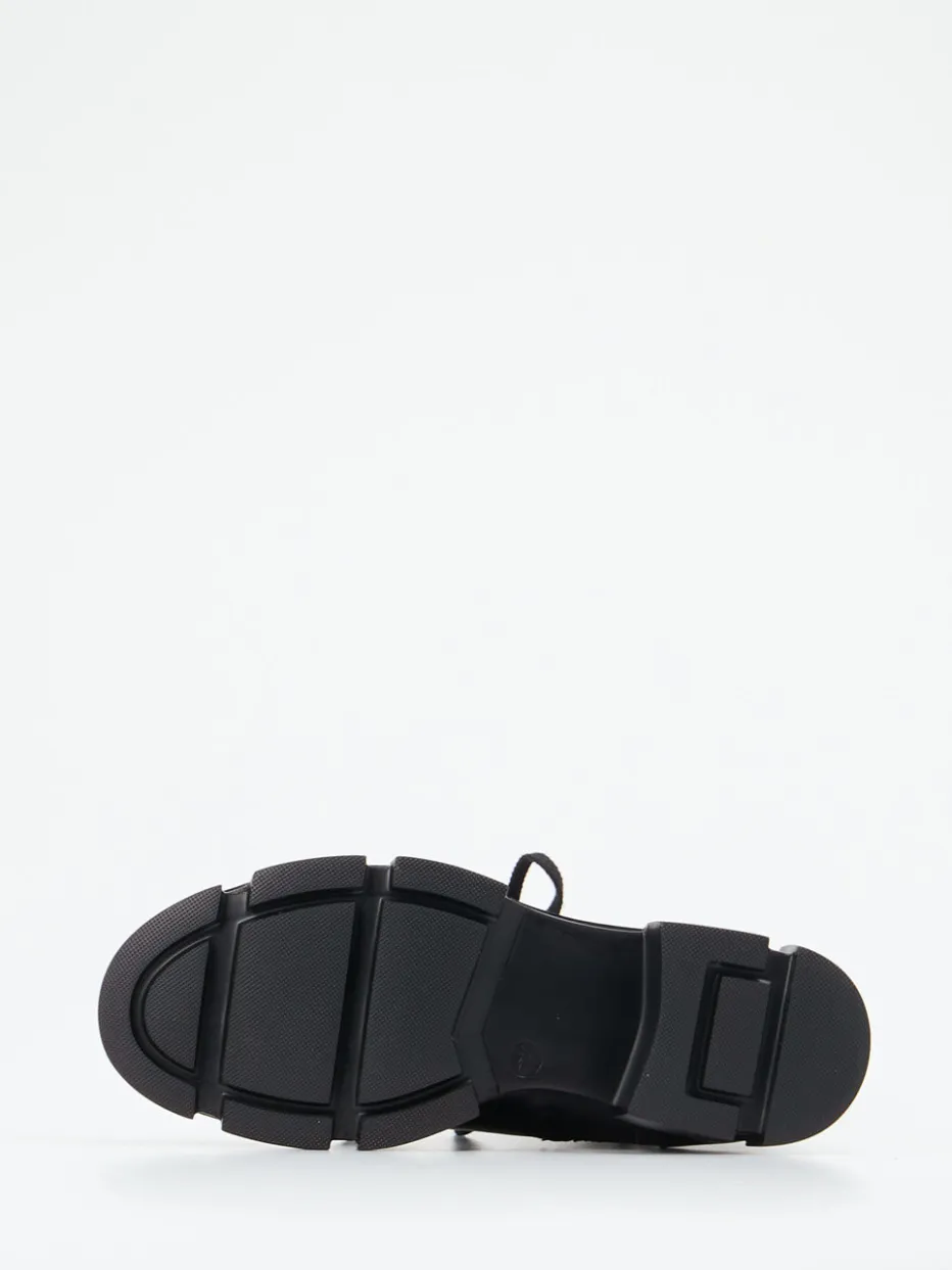 Diese glänzenden Schnürstiefeletten vereinen hochwertiges Kalbleder mit urban inspiriertem Design – ideal für klare Looks mit modischer Aussage.