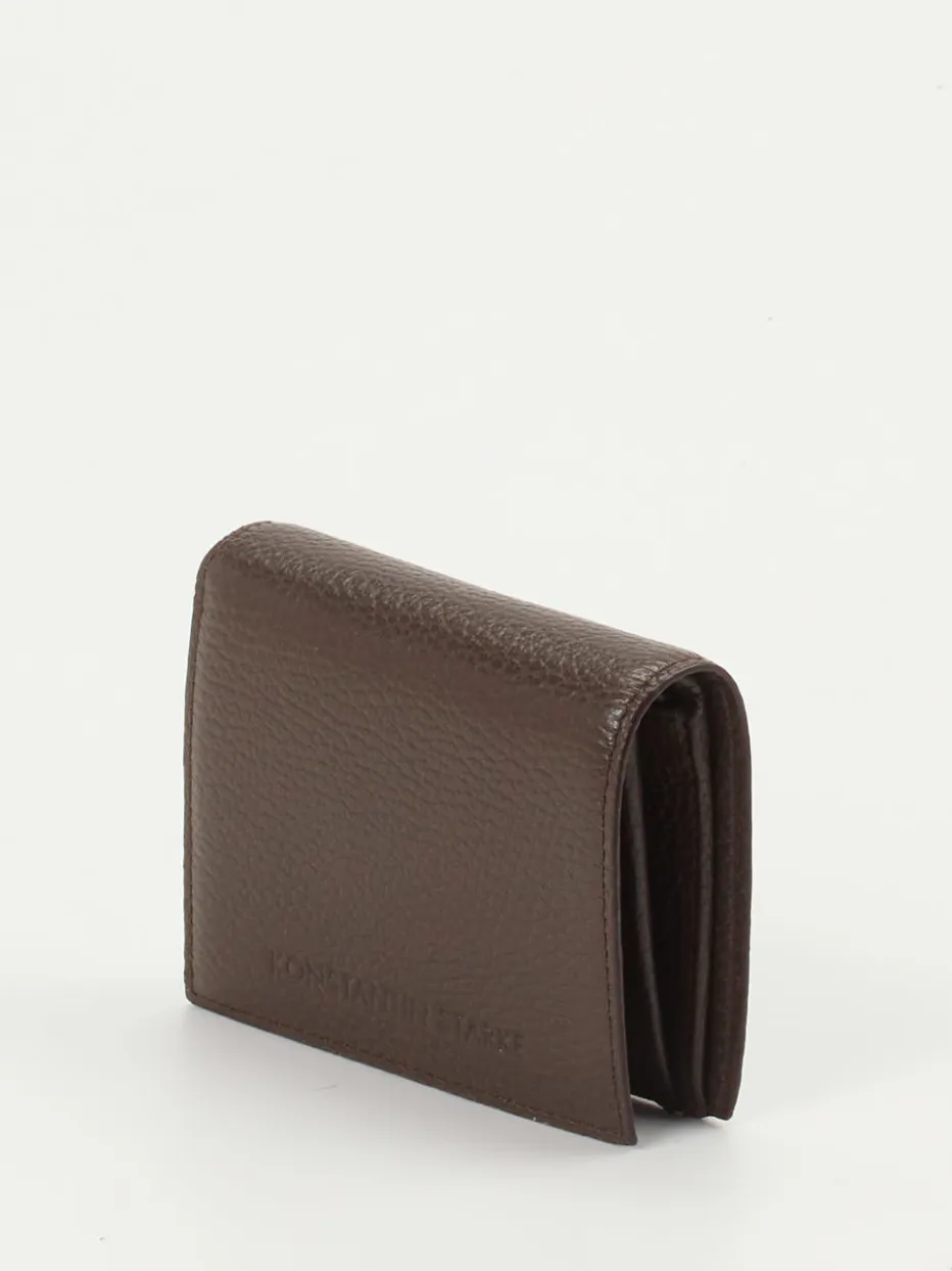 Aus hochwertigem, genarbtem Kalbleder gefertigt überzeugt dieses schlichte, braune Portemonnaie aus dem Hause Konstantin Starke. Die kleine, alltagstaugliche Größe und stilvolle Optik sorgen für das klassisch zeitlose Design. Karten, Bargeld und Belege können dank der überlegten Aufteilung sicher und praktisch verstaut werden. – Material: Kalbleder – Farbe: braun – Größe: ca. 9 x 10,5 x 3 cm (H x B x T) – Innen: drei Kartenfächer, ein Geldscheinfach, zwei Steckfächer, ein Münzfach mit Druckknopf – Verschlussart: Druckknopf