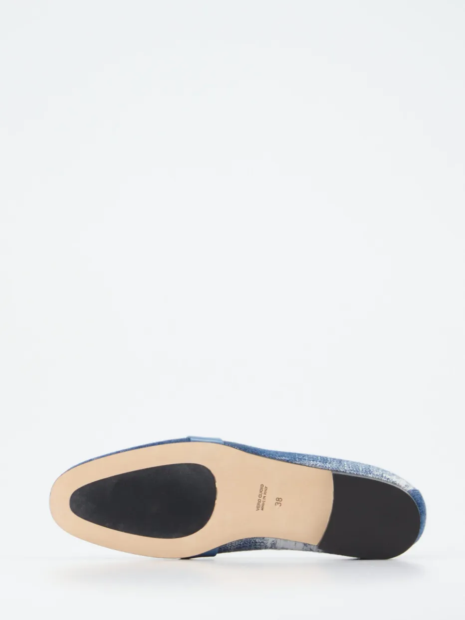 Der Mix aus Used-Denim und tonigem Kristallbesatz verleiht diesem Loafer eine trendbewusste Erscheinung mit subtiler Extravaganz. Ideal für stilvolle Street-Styles mit individueller Note.