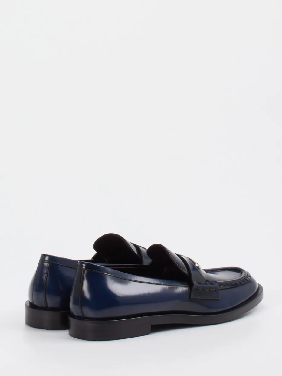 Dieser stilvolle Loafer verbindet glänzendes, tiefblaues Leder mit einer klassischen Silhouette und modernen Details – ideal für anspruchsvolle Business- wie Freizeitlooks.