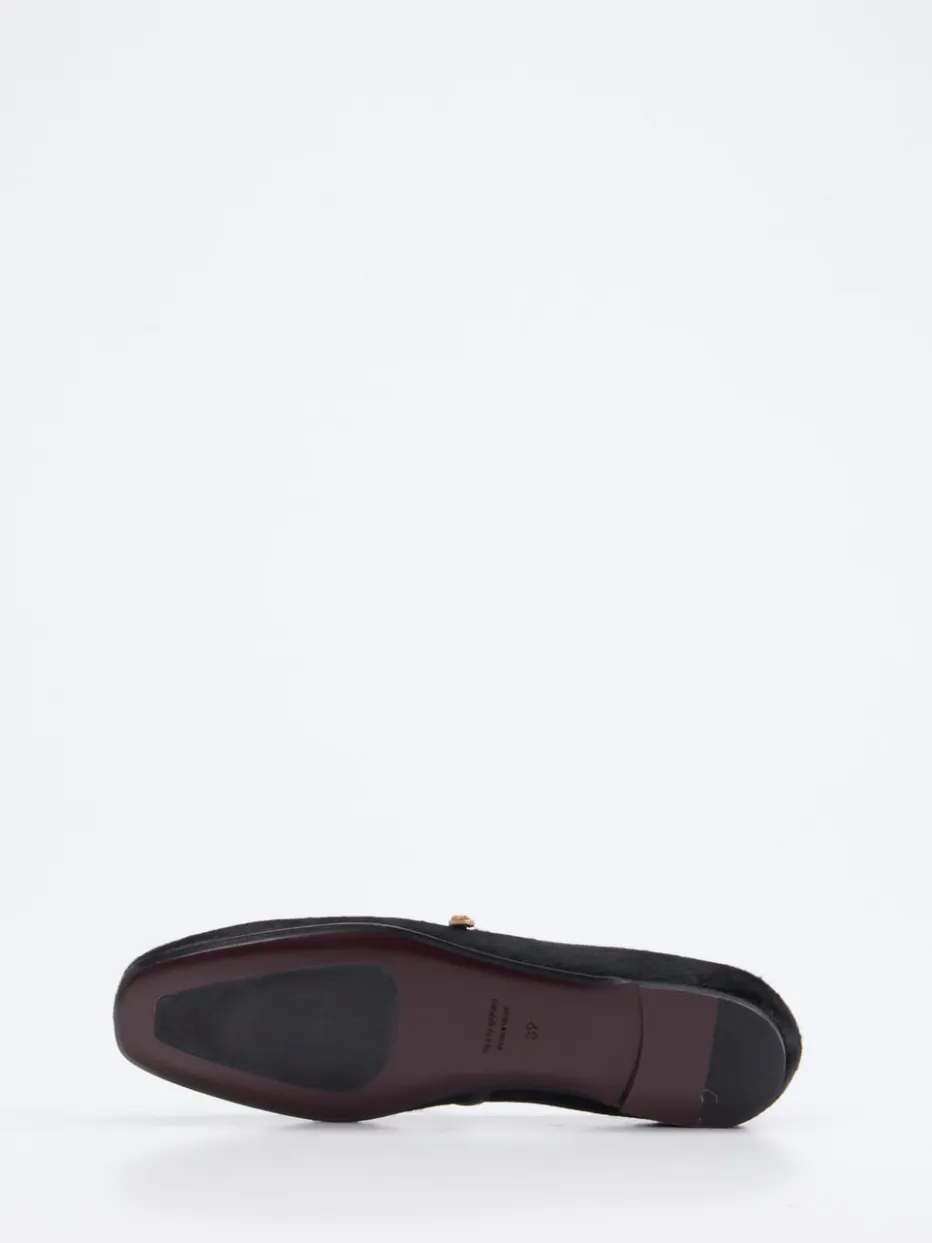 Moderner Klassiker mit luxuriöser Textur.Konstantin Starke präsentiert stilvolle Mary Jane Ballerinas für Damen. Ideal für anspruchsvolle Alltags- und Business-Outfits verbinden diese Modelle klassisch-flache Linienführung mit hochwertigem schwarzem Fell – charakteristisch durch eine leicht haarige, fein strukturierte Oberfläche. Goldfarbene Schnallen mit Gravur setzen elegante Akzente am Spannriemen. Das weiche Innenfutter aus Ziegenleder sorgt für ein angenehmes Tragegefühl, während die halb Gummi-, halb Ledersohle sicheren Tritt bietet. Als subtiler Trendträger des „Quiet Luxury“-Stils harmoniert das Design besonders mit minimalistischen Looks. Ein femininer Allrounder mit feinstem Finish und diskretem Luxusanspruch.