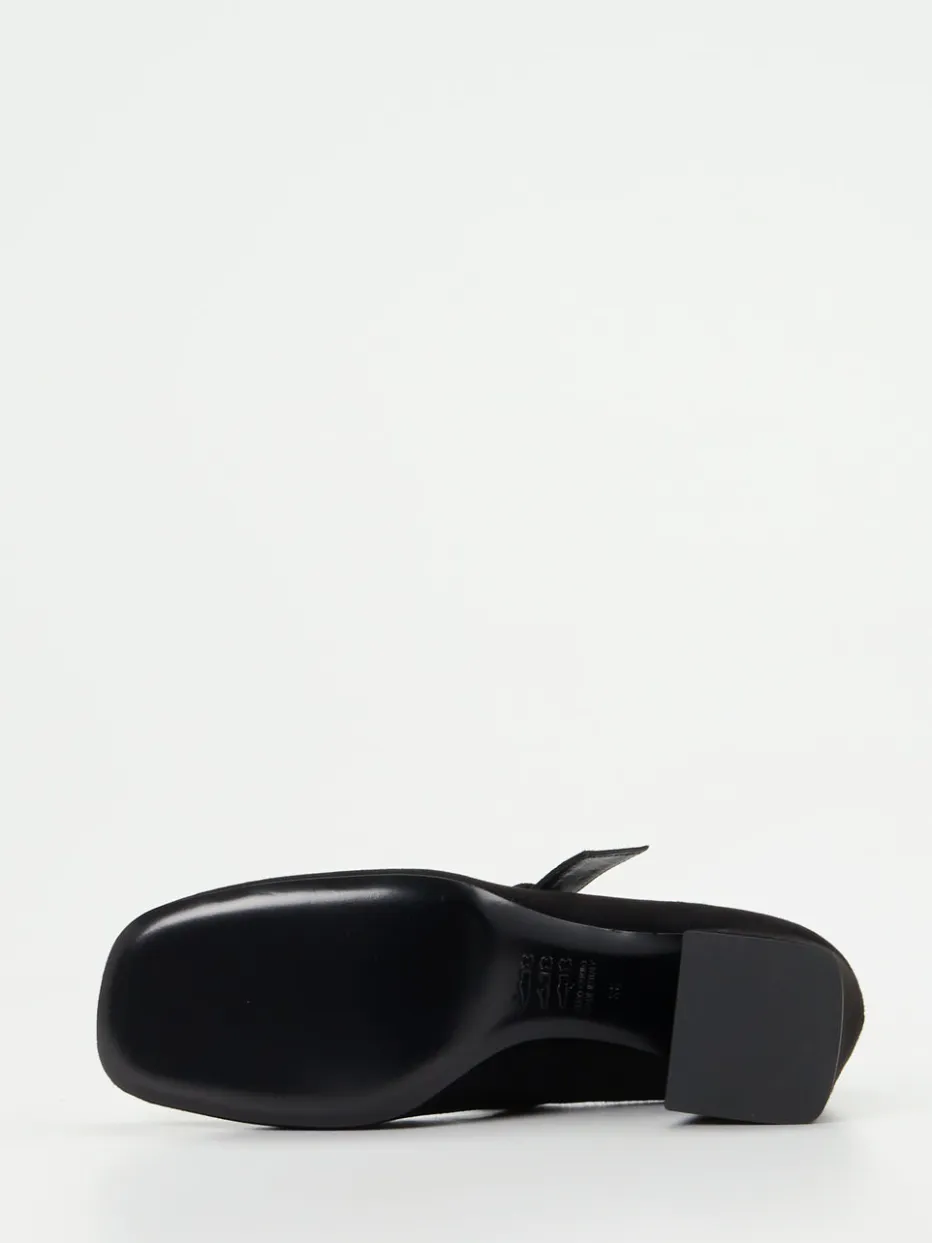Retro-Finesse mit modernem Understatement.Konstantin Starke bringt mit diesen Mary-Jane-Pumps eine stilvolle Interpretation klassischer Eleganz für Damen. Ideal für formelle Anlässe oder den dezenten Business-Look: Schwarzes, samtig angeschliffenes Veloursleder trifft auf eine klassische Silhouette mit 7 cm hohem Blockabsatz. Der feine Ristriemen mit funkelnder Schmuckstein-Schnalle bringt dezenten Glanz ins Spiel und veredelt das minimalistische Design. Die glatte Ledersohle sowie das weiche Ziegenlederfutter stehen für hohen Tragekomfort und Qualität. Inspiriert von 90er-Retro-Stil strahlt das Modell pure „Quiet Luxury“-Ästhetik aus. Harmoniert besonders gut mit dunklem Tailoring oder monochromen Ensembles. Edles Design für strukturierte Eleganz im Alltag und zu besonderen Anlässen.