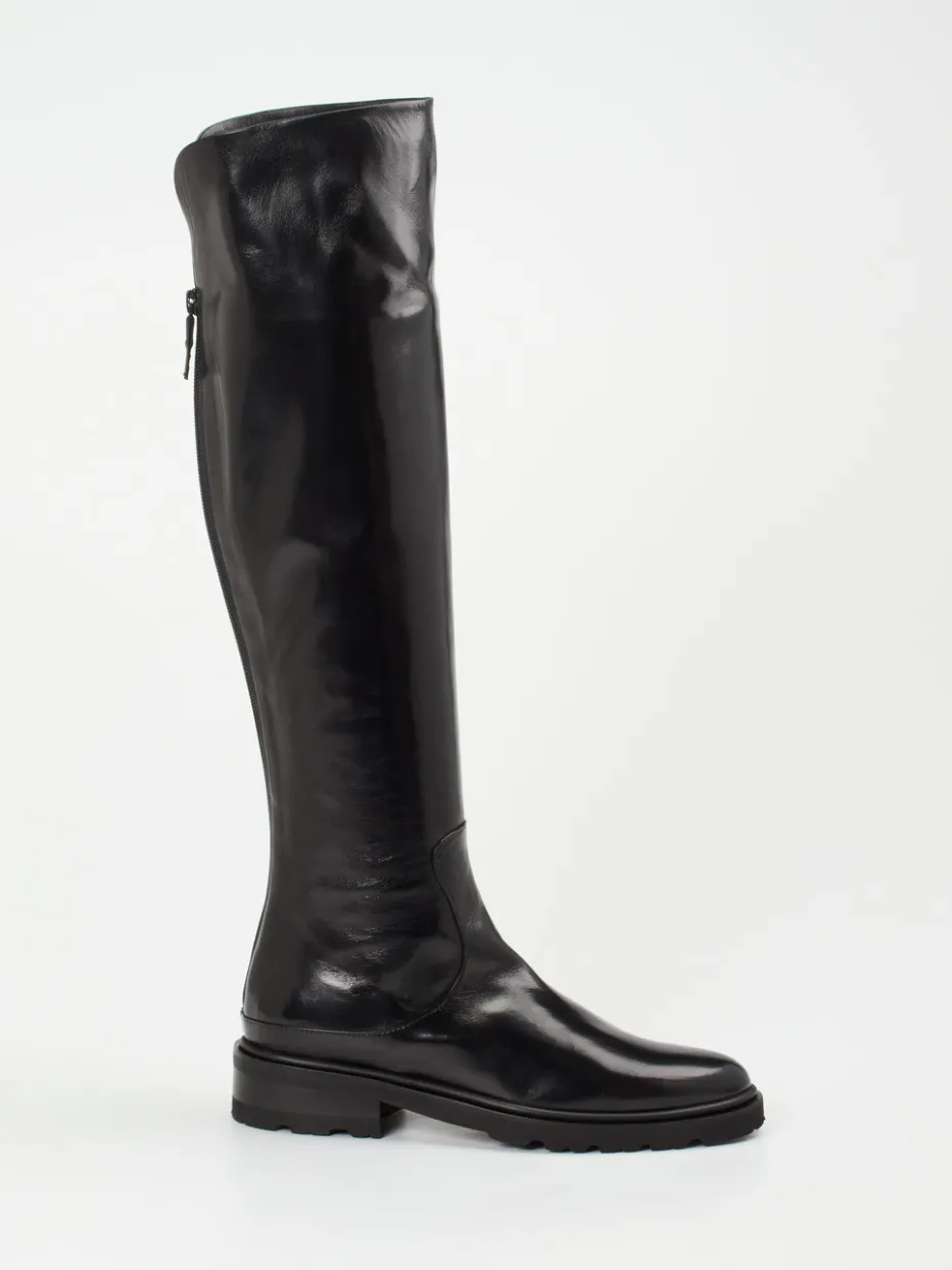 Dieser Overknee-Stiefel vereint hochwertiges Lammleder mit einem minimalistischen Design – ideal für trendbewusste Looks mit urbaner Eleganz.