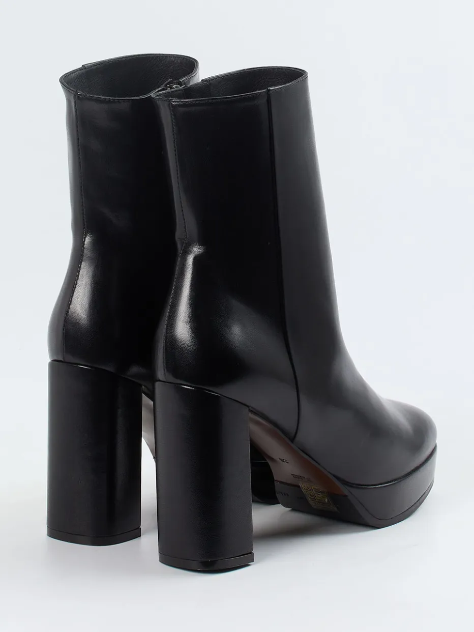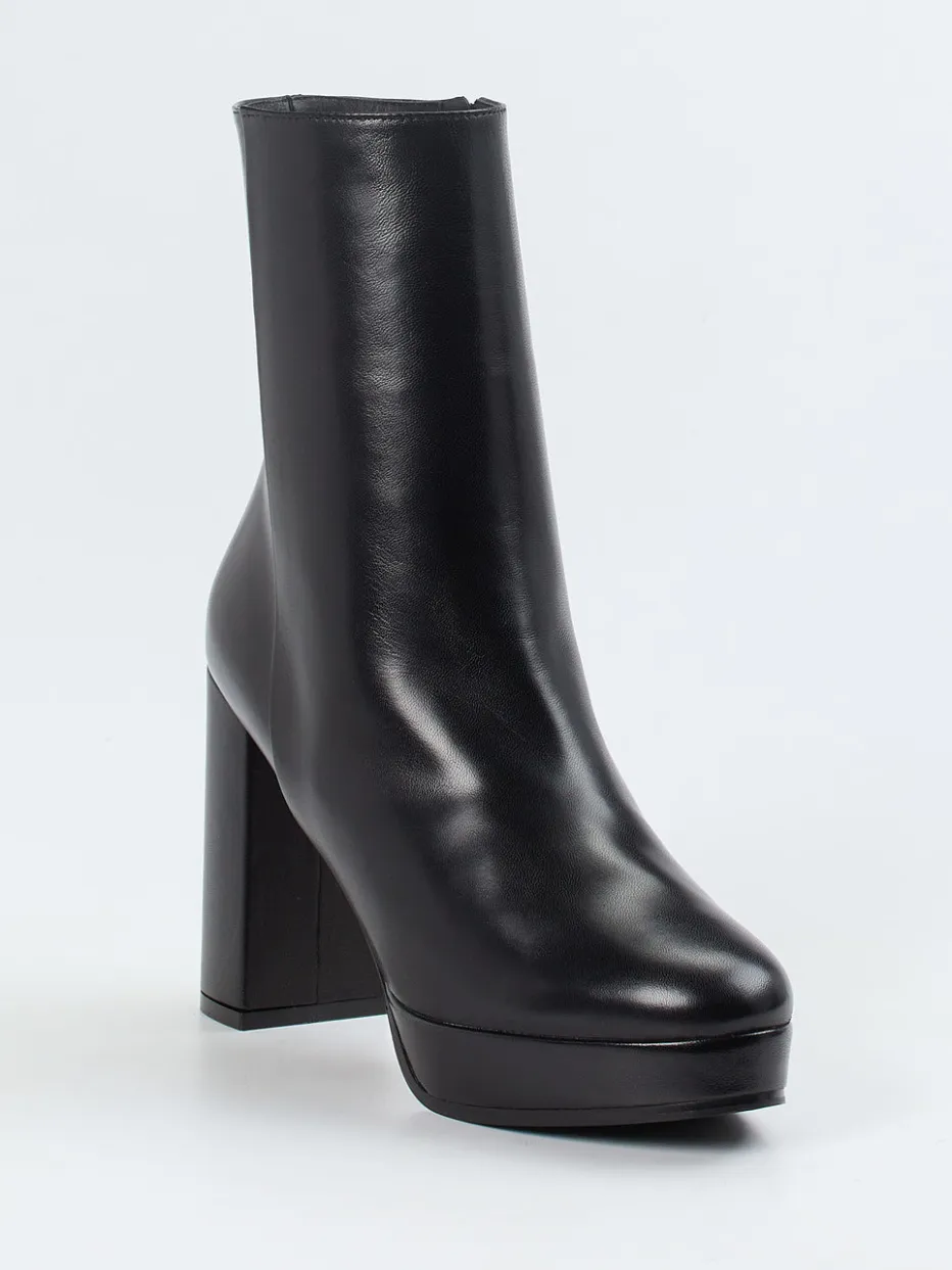 Eleganz und Ausdruck vereinen sich in dieser minimalistischen Plateau-Stiefelette aus edlem Lammleder. Der markante Blockabsatz betont das klare Design mit modernem 70s-Twist.