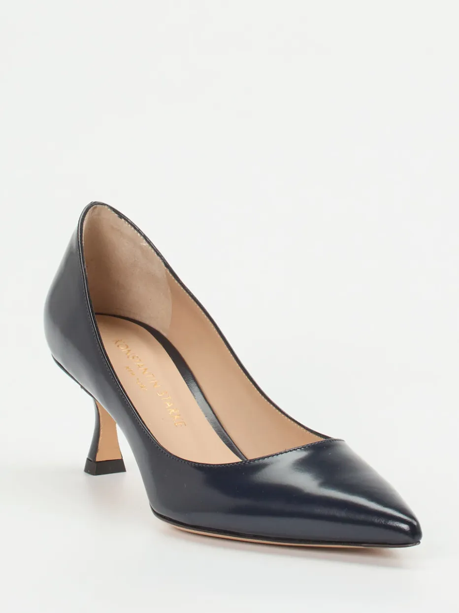 Eleganz im Tintenblau.Konstantin Starke präsentiert einen Pumps für Damen mit stilvollem Anspruch. Ideal für formelle Anlässe oder den Business-Alltag bietet dieser Kitten Heel dank leicht gepolsterter Innensohle hohen Komfort. Gefertigt aus edlem Hochglanzleder mit leichtem Glanz und Ton-in-Ton-Nähten, tritt das Modell in tiefem Blau besonders elegant in Erscheinung. Die klassische, spitze Form und der lederbezogene Absatz greifen den Vintage-inspirierten Kitten-Heel-Trend auf. Perfekt kombinierbar zu cremeweißer Seidenbluse oder Navy-Handtasche. Ein femininer Klassiker mit moderner Linienführung und leiser Raffinesse.