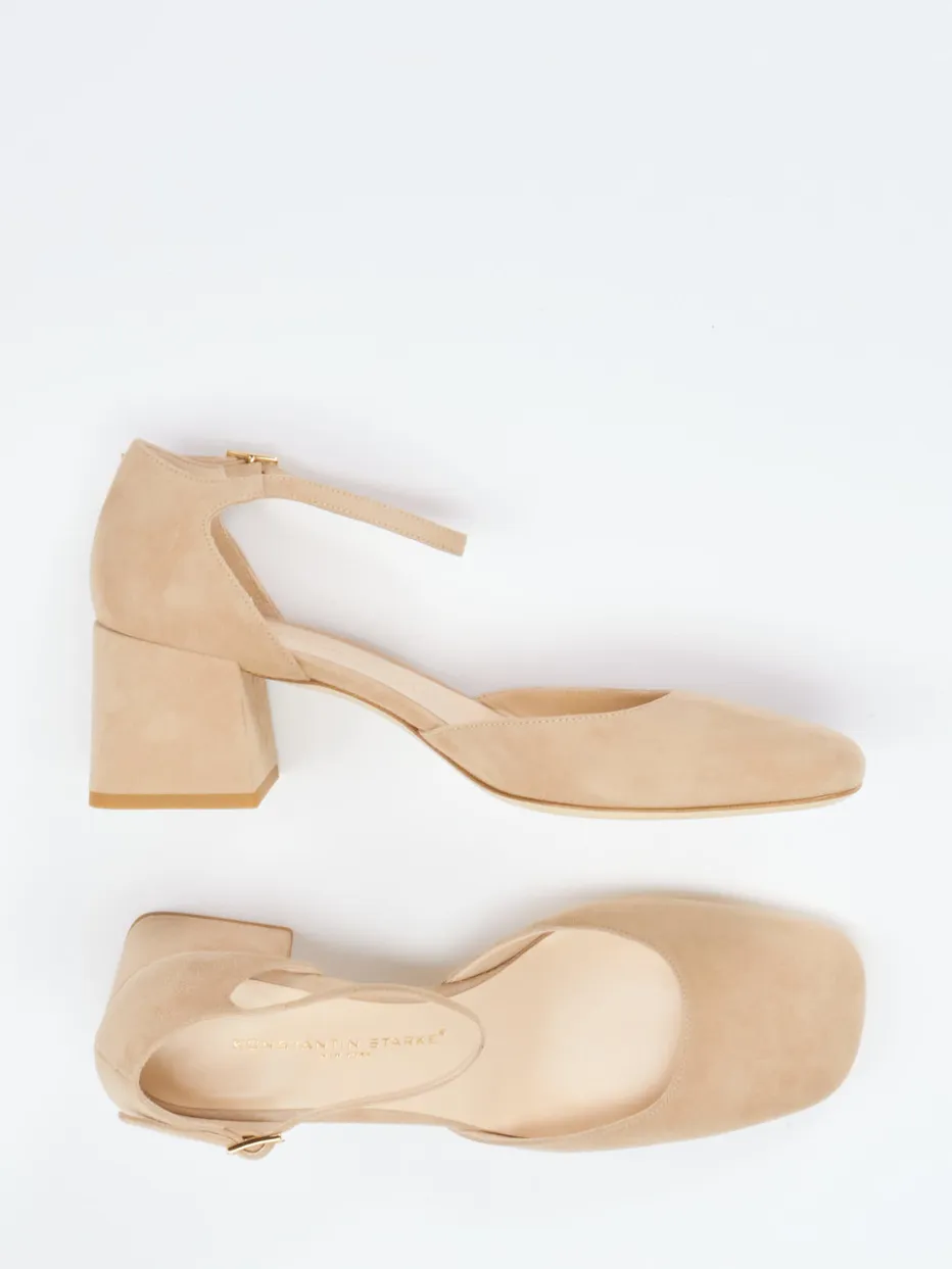 Minimalistisch mit Vintage-Flair.Konstantin Starke präsentiert elegante Damenpumps in beigefarbenem Veloursleder. Für Business-Termine oder festliche Anlässe bieten diese Pumps mit geschlossenem Vorderteil und offener Ferse zuverlässig Stil. Das samtig angeschliffene Veloursleder unterstreicht den hochwertigen Charakter, während ein Blockabsatz und ein individuell einstellbarer Fesselriemen mit goldfarbener Schnalle Komfort und sicheren Halt vereinen. Die klare Silhouette harmoniert mit den Farbwelten des „Quiet Luxury“-Trends der Saison. Ideal für klassische Looks mit Blazern oder fließenden Stoffen. Ein feminines Statement mit feinem Lammnappa-Futter und dezenter Noblesse.