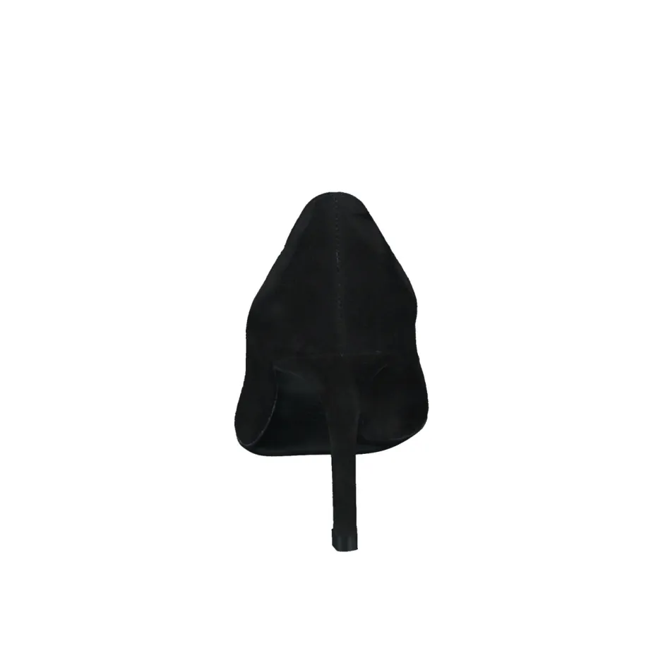 Der klassische Pumps aus schwarzem Veloursleder kombiniert elegante Linienführung mit komfortabler Innenausstattung – ideal für anspruchsvolle Anlässe und Businesslooks.
