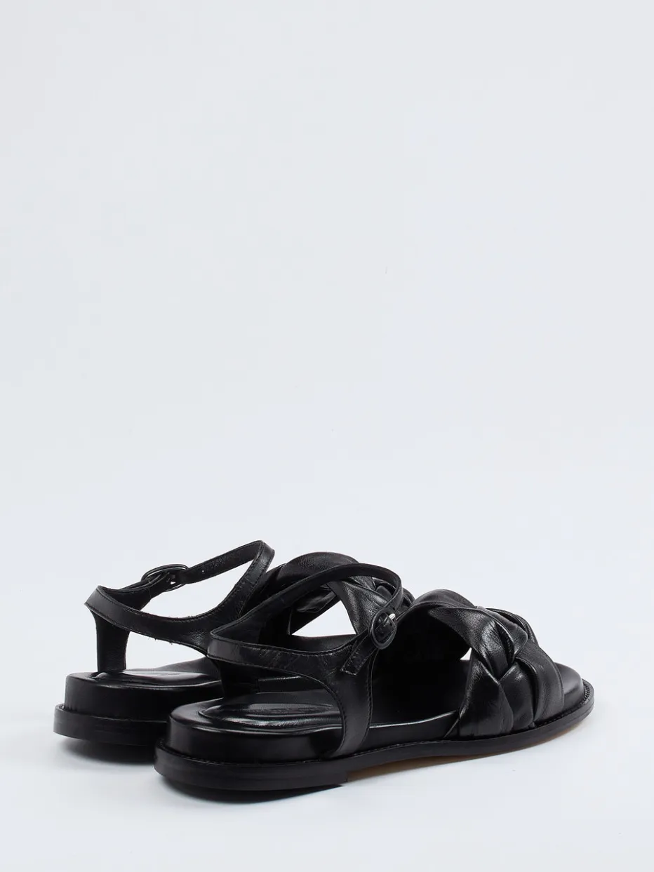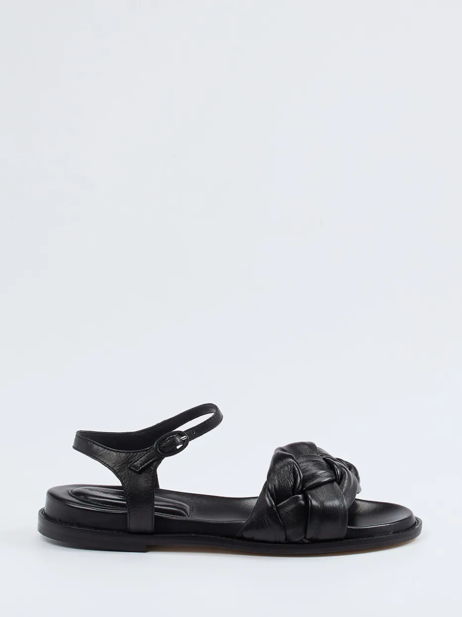 Die flache Riemchensandale überzeugt mit besonders weichem Lammleder, geflochtener Frontpartie und dezenter Schnalle – ein modischer Akzent im Stil von Quiet Luxury.