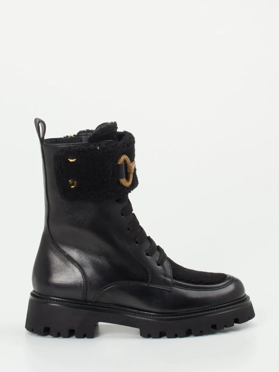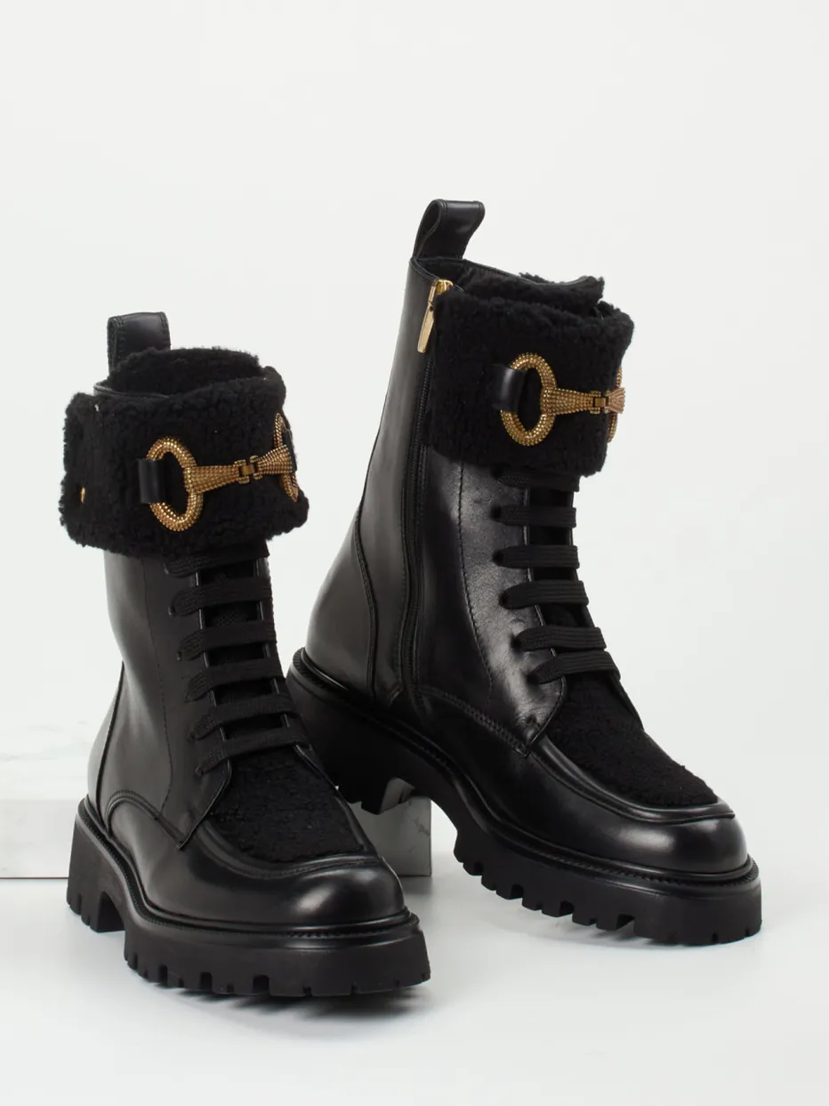 Diese Schnürboots aus schwarzem Kalbleder vereinen stilvolle Reiterdetails mit urbaner Robustheit – ein perfektes Update für die kalte Jahreszeit.