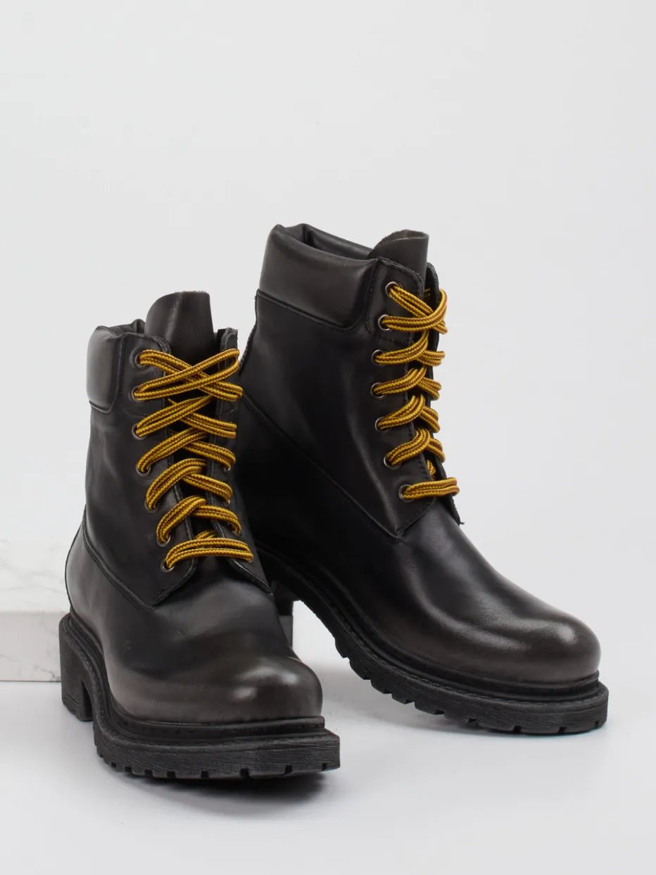 Markante Schnürboots aus edlem Kalbleder mit robustem Design und stilvollem Used-Look – ideal für urbane Alltags- und Outdoor-Styles.