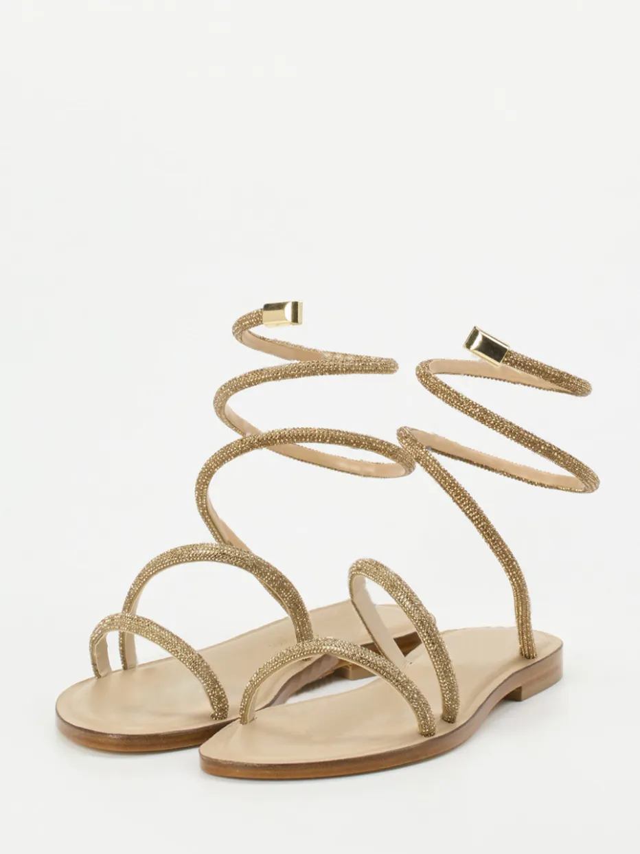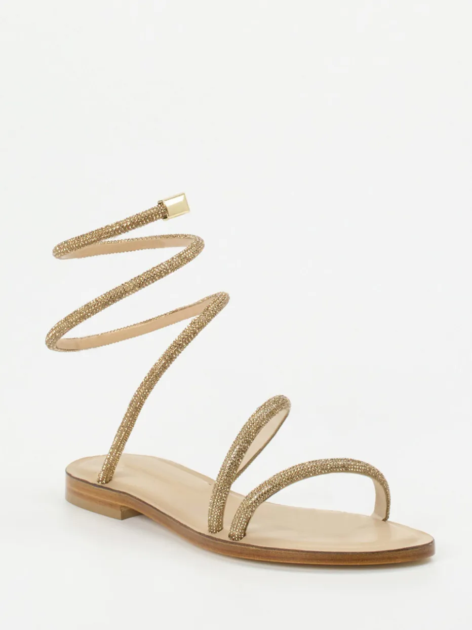 Diese femininen Sandalen bringen mit spiralförmiger Schnürung und funkelndem Strassbesatz moderne Eleganz in jeden Anlass. Ein Highlight für stilbewusste Sommer-Looks.