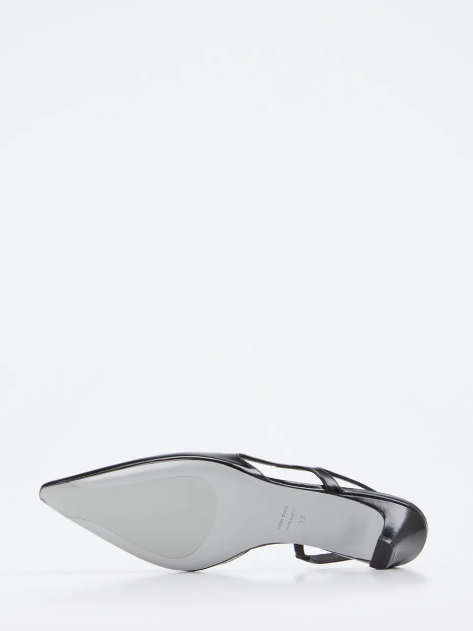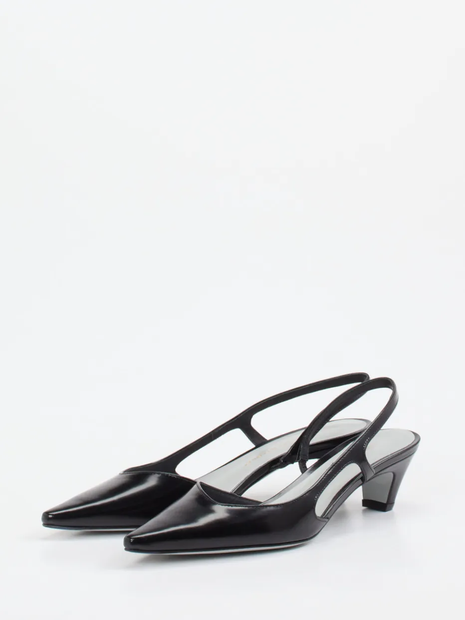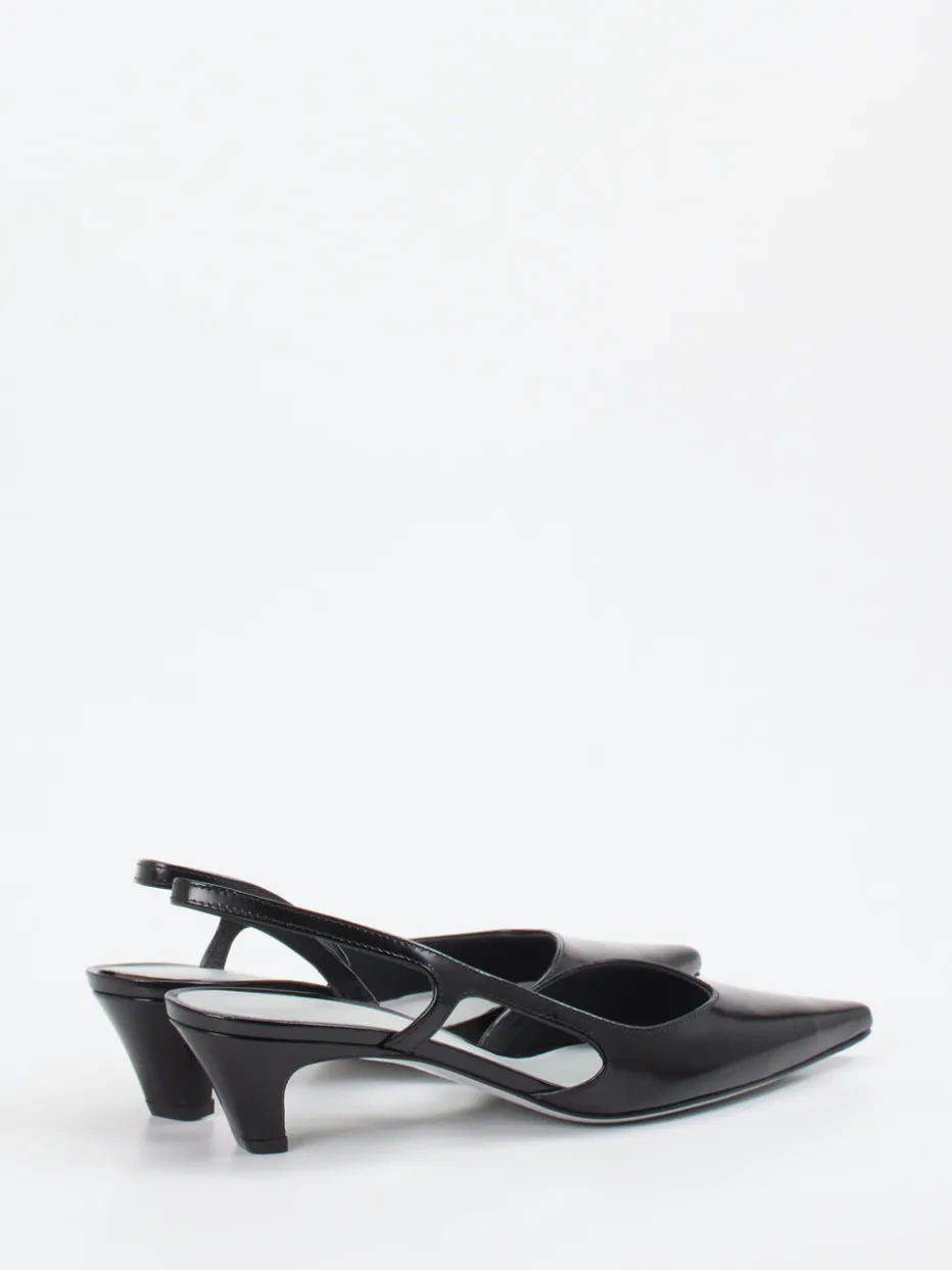 Mit ihrer spitz zulaufenden Form und dem glänzenden Finish setzen diese Slingback-Pumps auf dezente Eleganz. Die komfortable Absatzhöhe macht sie ideal für lange Tage im Büro oder stilvolle Abendveranstaltungen.