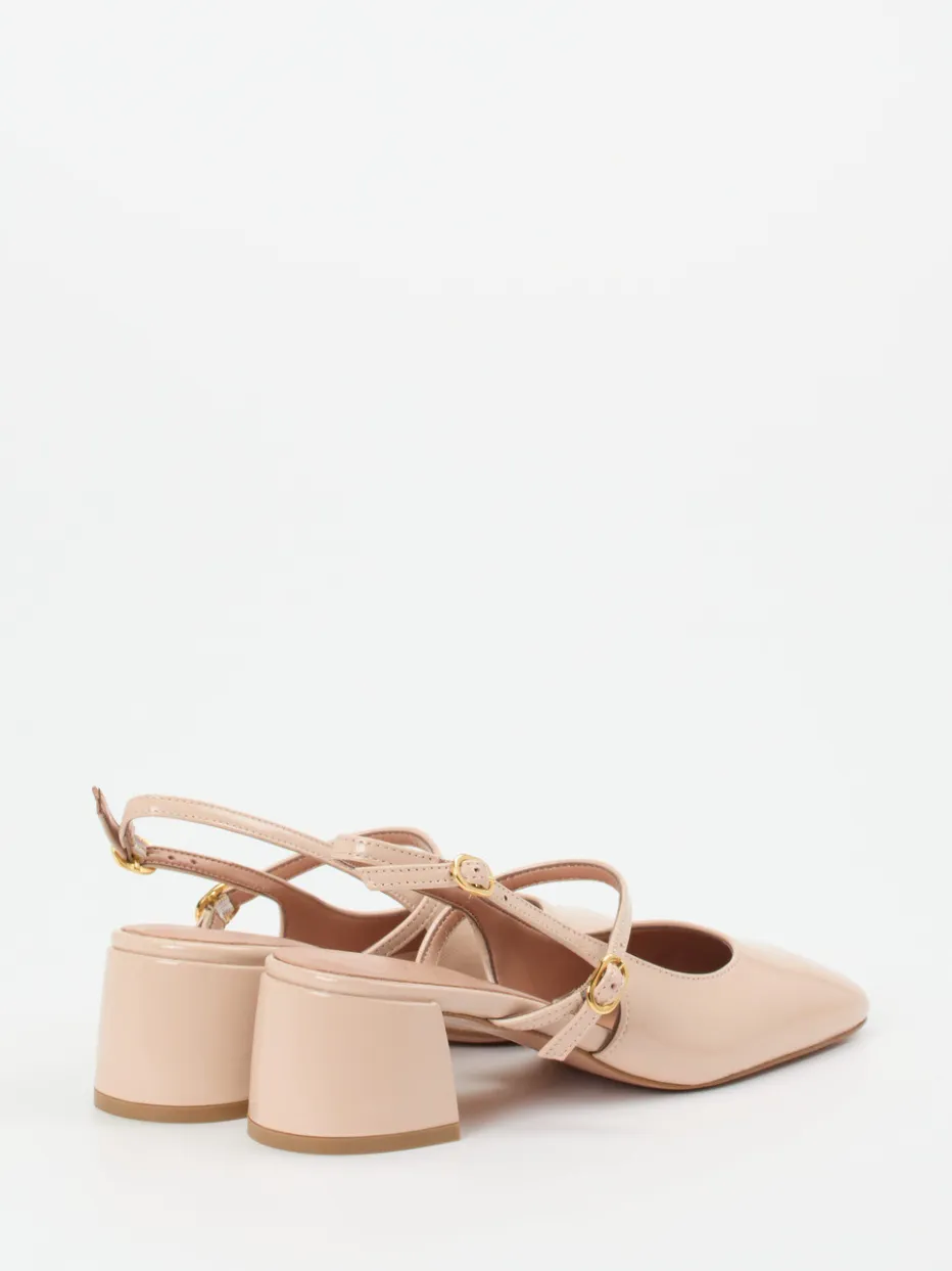 Glanzstück für stilvolle Auftritte.Konstantin Starke präsentiert elegante Slingback-Pumps für Damen. Der glänzende Lackleder-Look in einem soften Nude-Ton sorgt für eine edle Wirkung bei Business-Meetings oder besonderen Anlässen. Filigrane Riemchen mit goldfarbenen Schnallen ermöglichen eine individuelle Passform, während der ca. 4,5 cm hohe Blockabsatz sicheren Komfort bietet. Die klassische Silhouette harmoniert mit dem Carréleisten und interpretiert dezente 90s-Retro-Codes neu. Die gepolsterte Ledersohle im Inneren steigert zusätzlich das Tragevergnügen. Ein cleanes Statement für den „Quiet Luxury“-Trend. Stilvoll kombinierbar mit pastellfarbener Seidenbluse oder toniger Leder-Clutch. Konstantin Starke steht für zeitlose Eleganz mit femininer Klarheit.