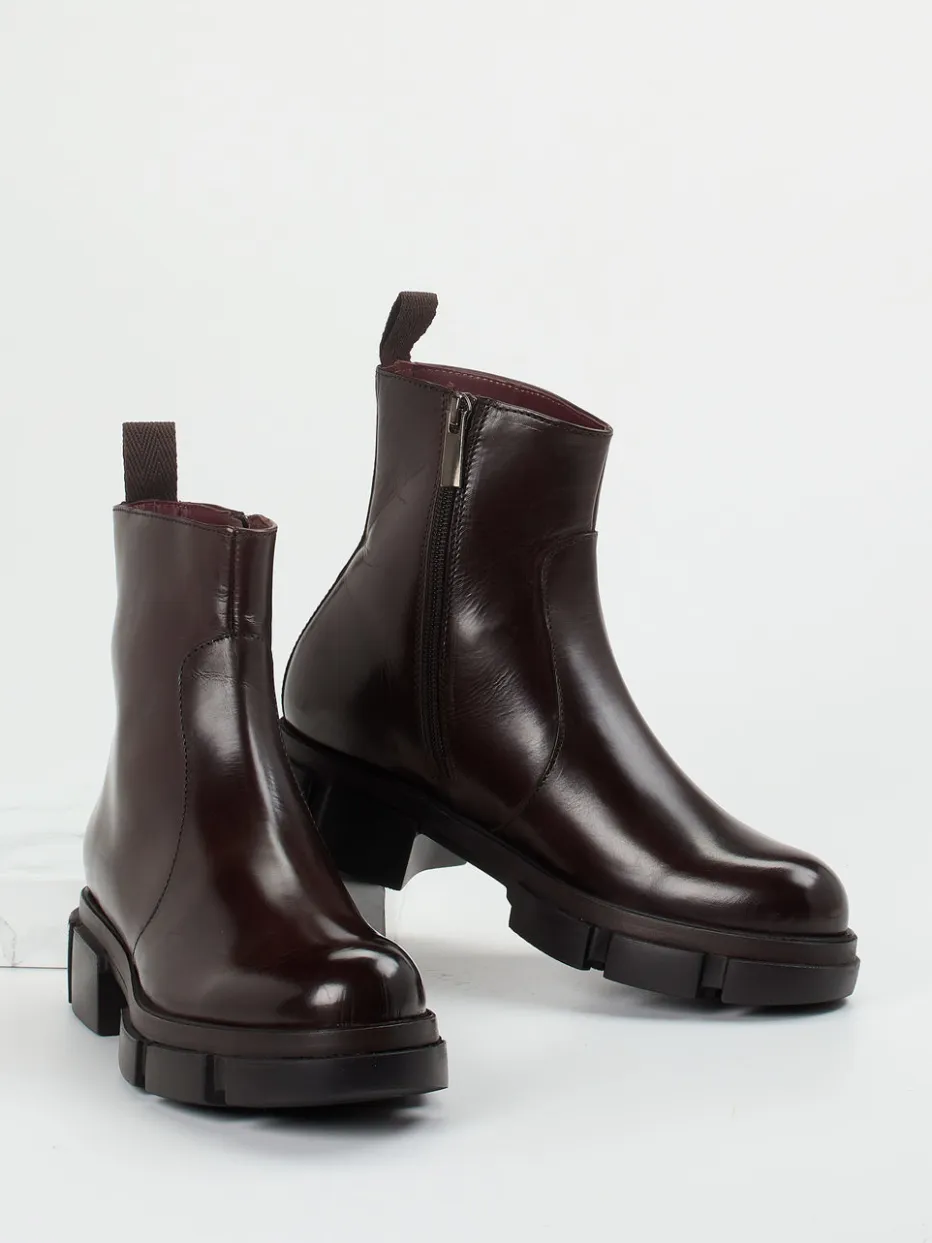 Fein glänzendes Kalbleder und eine profilierte Chunky-Sohle kombinieren sich zu einer stilsicheren Stiefelette für urbane Looks mit Komfortanspruch.
