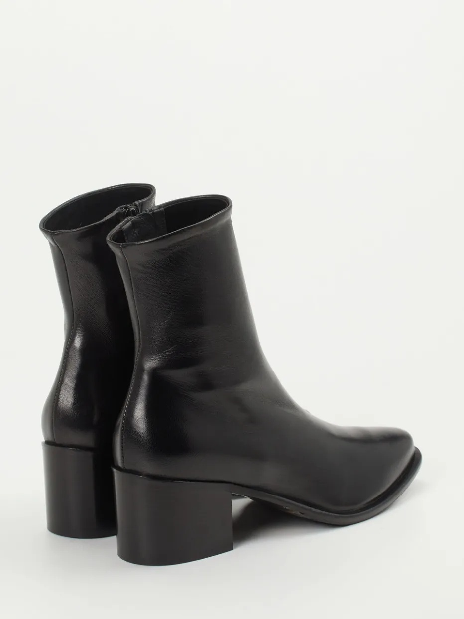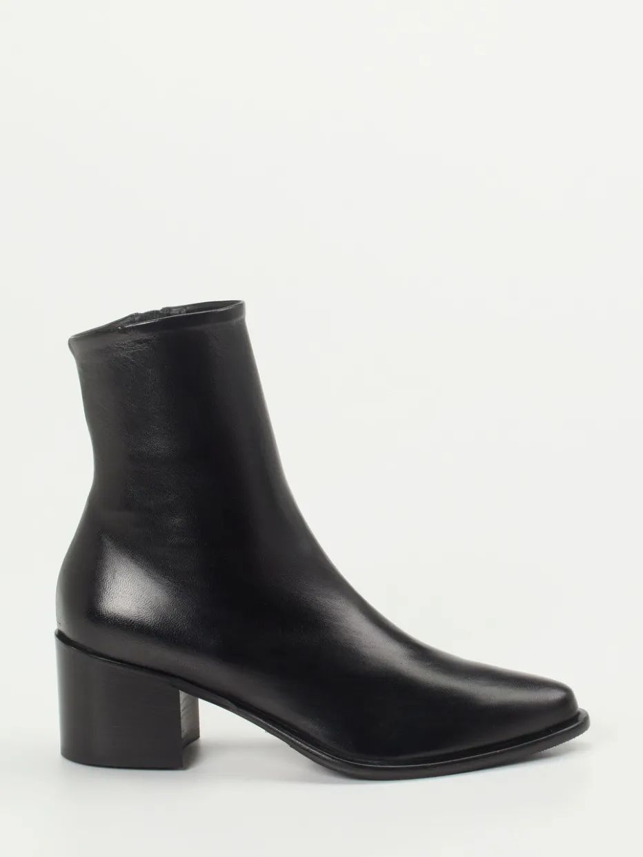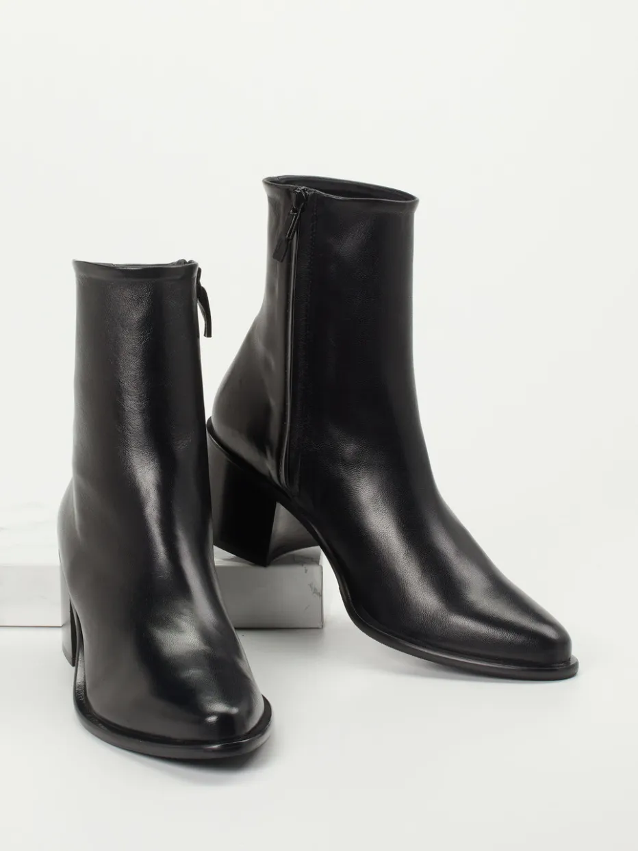 Die klar geformte Stiefelette aus schwarzem Lammleder vereint hochwertigen Komfort mit einem dezenten, modernen Look – ideal für minimalistische Stilwelten.