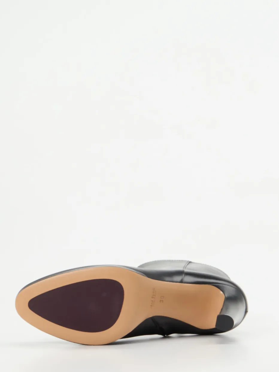 Die schmal geschnittene Silhouette und das schwarze, leicht glänzende Kalbleder vereinen klassische Eleganz mit modernem Purismus – perfekt für formelle Anlässe oder stilvolle Büro-Outfits.