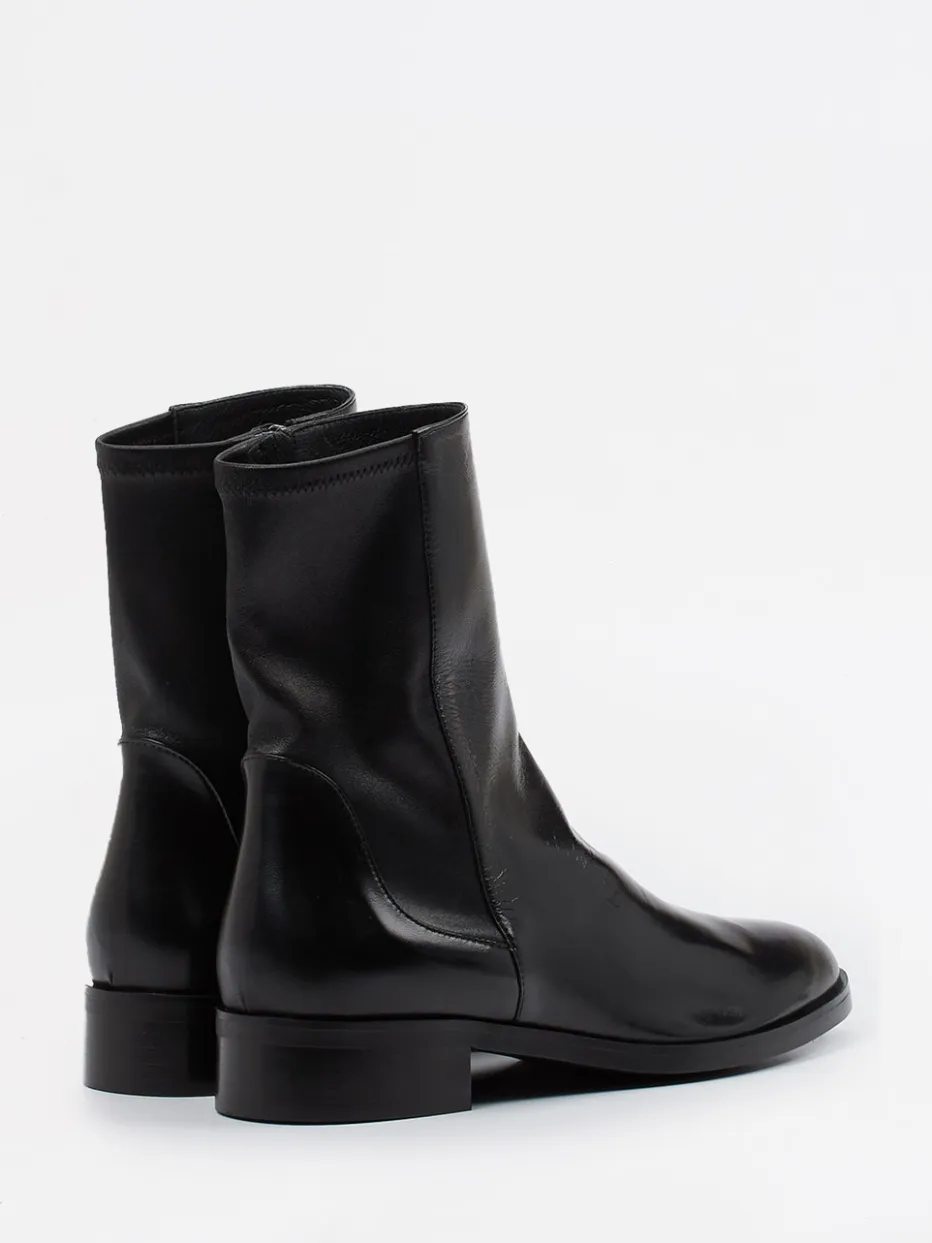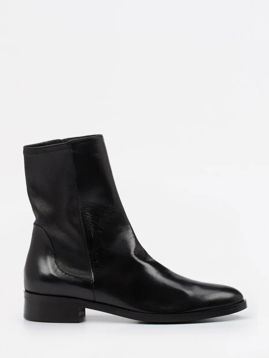 Hochwertiges Lammleder mit edlem Glanz verleiht dieser Stiefelette minimalistischen Chic. Das Design bleibt zeitlos – perfekt für Business wie Freizeit.