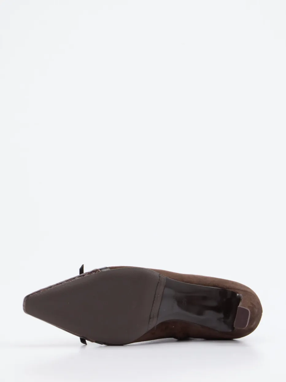 Stilsicher durch kühles Herbstwetter.Die Damenstiefelette von Konstantin Starke vereint klassische Formensprache mit modischem Feinschliff. Für einen eleganten Auftritt im Office oder bei formellen Anlässen sorgt das edle Veloursleder, ergänzt durch eine glänzende Lacklederkappe mit Kroko-Prägung und femininer Zierschleife. Die dunkelbraune Farbgebung, die schmal zulaufende Silhouette und der 5,5 cm hohe Kitten Heel schaffen eine stilvolle Präsenz. Ein seitlicher Reißverschluss erleichtert das Anziehen, während die Gummisohle sicheren Halt bietet. Der Materialmix und das dezente Vintage-Flair greifen den aktuellen Quiet-Luxury-Trend auf. Eleganz mit Understatement – perfekt für anspruchsvolle City-Looks.
