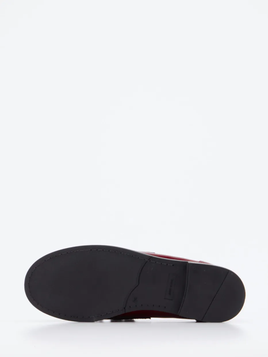 Der bordeauxrote Tassel Loafer aus glänzendem Lackleder vereint klassische Ästhetik mit minimalistischem Chic – ein souveräner Begleiter für Büro und Alltag.