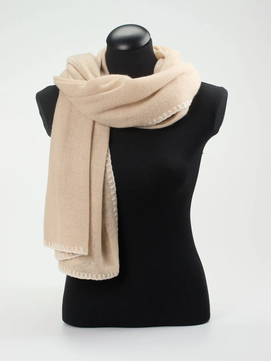 Mit diesem beigen Tuch der Marke Konstantin Starke machen Sie alles richtig! Das Material aus 100% Kaschmir ist wunderbar weich und anschmiegsam. Geschmackvoll abgerundet wird der Look von einer weißen, gestickten Bordüre. – Material: 100 % Kaschmir – Farbe: Beige – Maße: ca. 80 x 215 cm – Pflegehinweis: Handwäsche