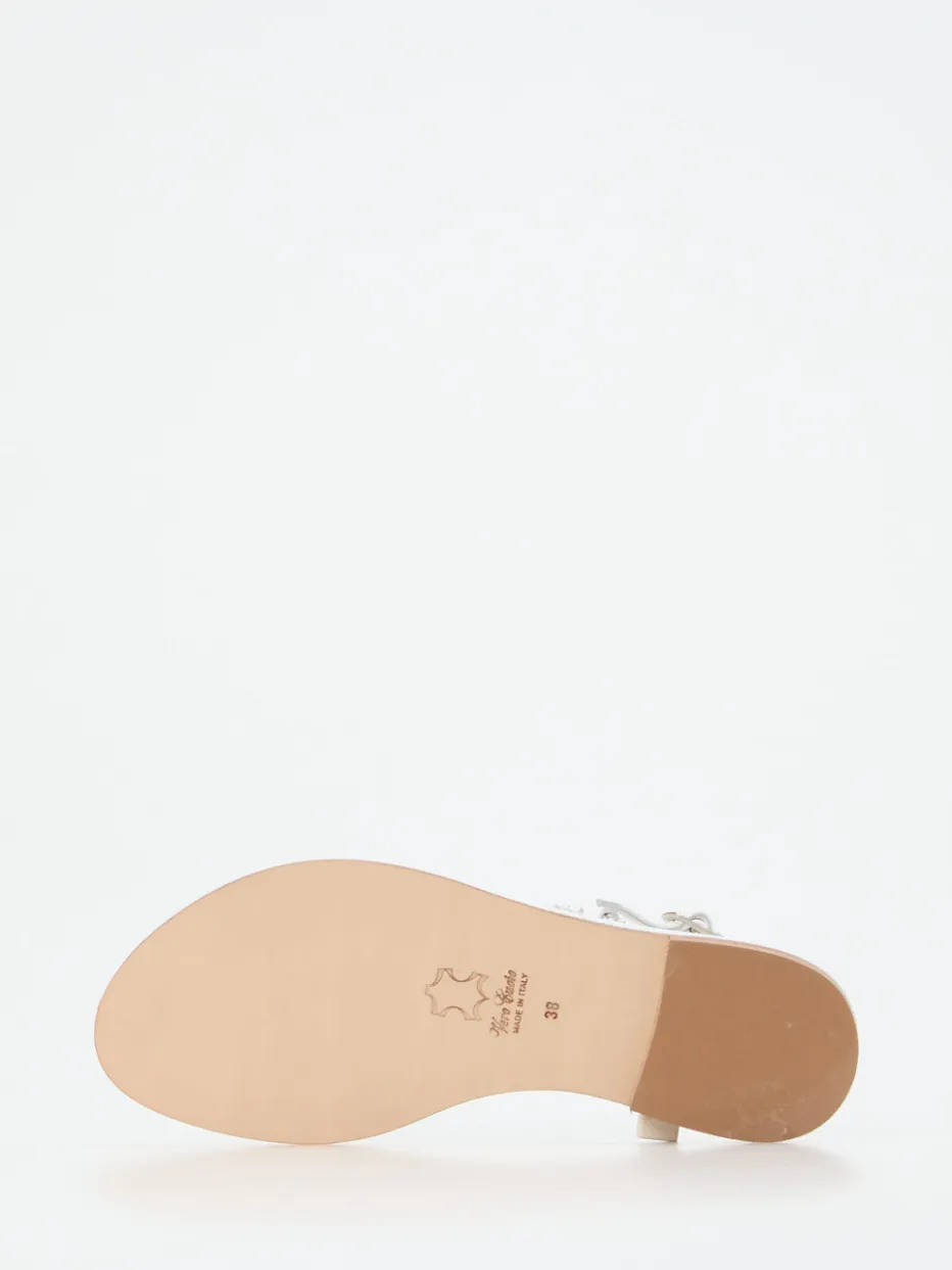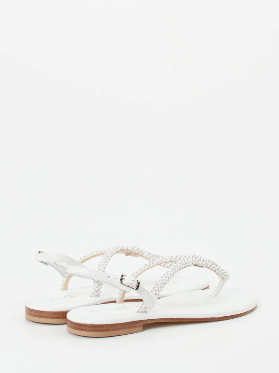 Filigran verarbeitete Zehentrenner-Sandale mit glänzendem Finish und zeitloser Strassverzierung – ein stilvoller Akzent für festliche Sommermomente.