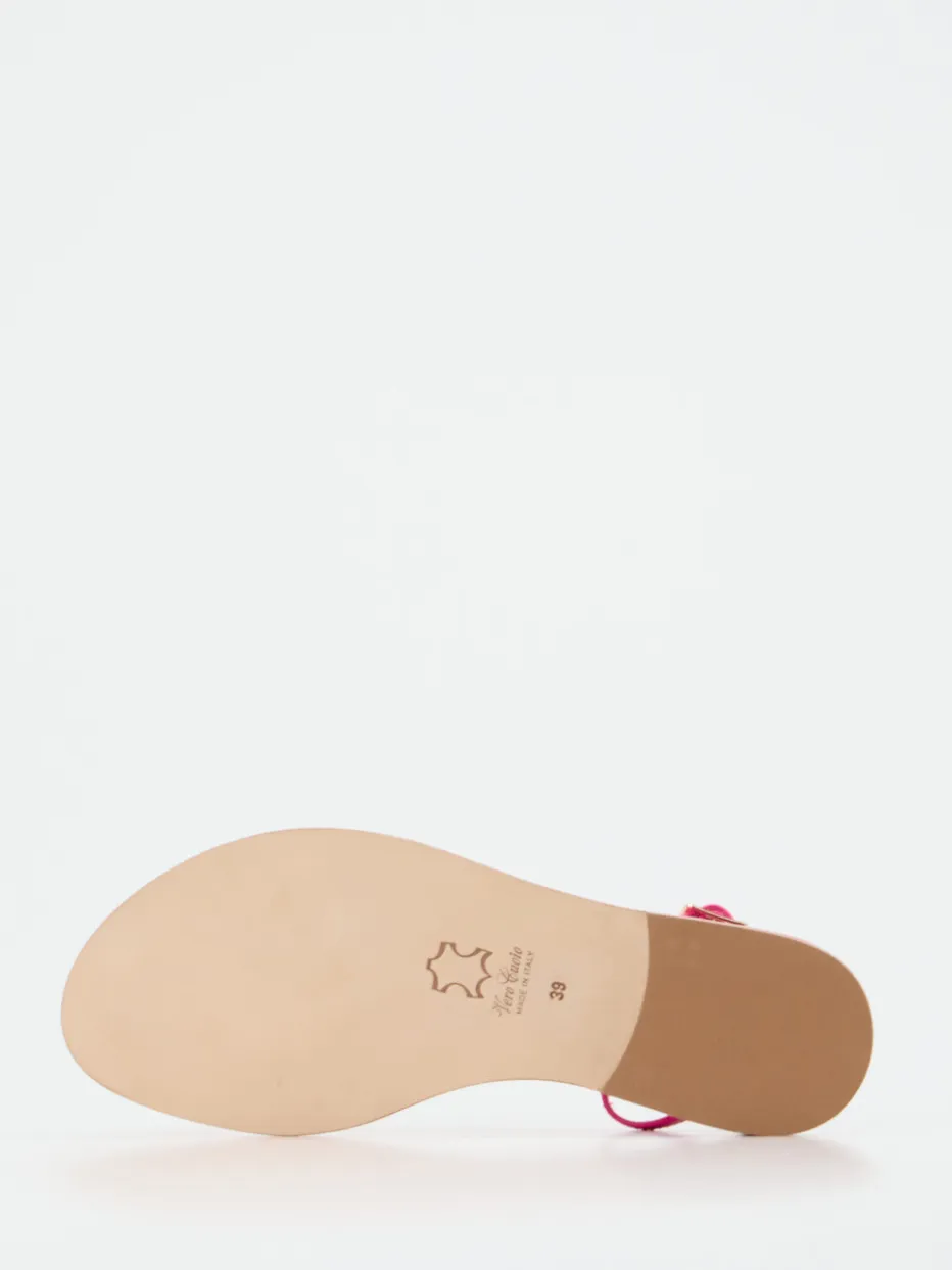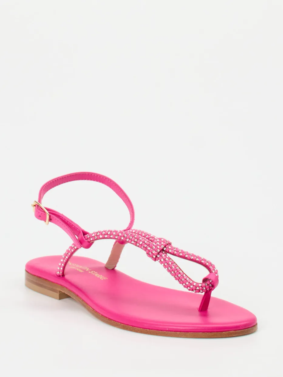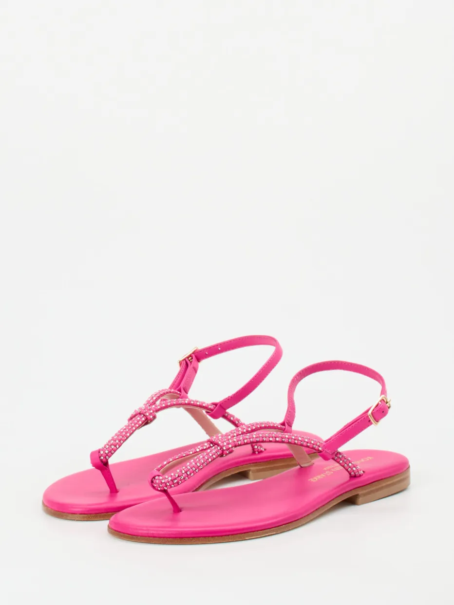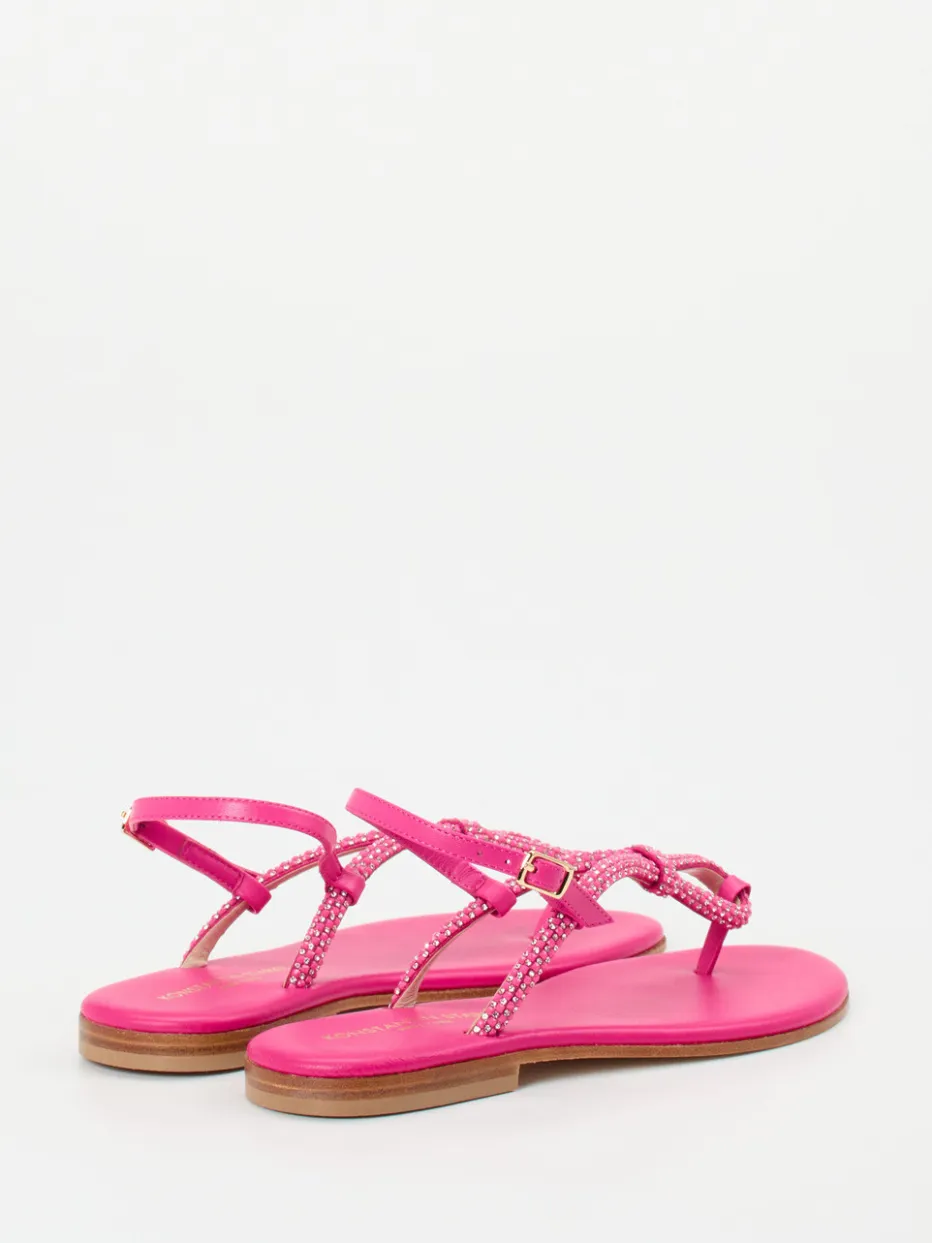 Diese Sandale vereint femininen Y2K-Charme mit hochwertiger Verarbeitung. Strassdetails und pinkes Glattleder machen sie zum modischen Statement im Sommer.