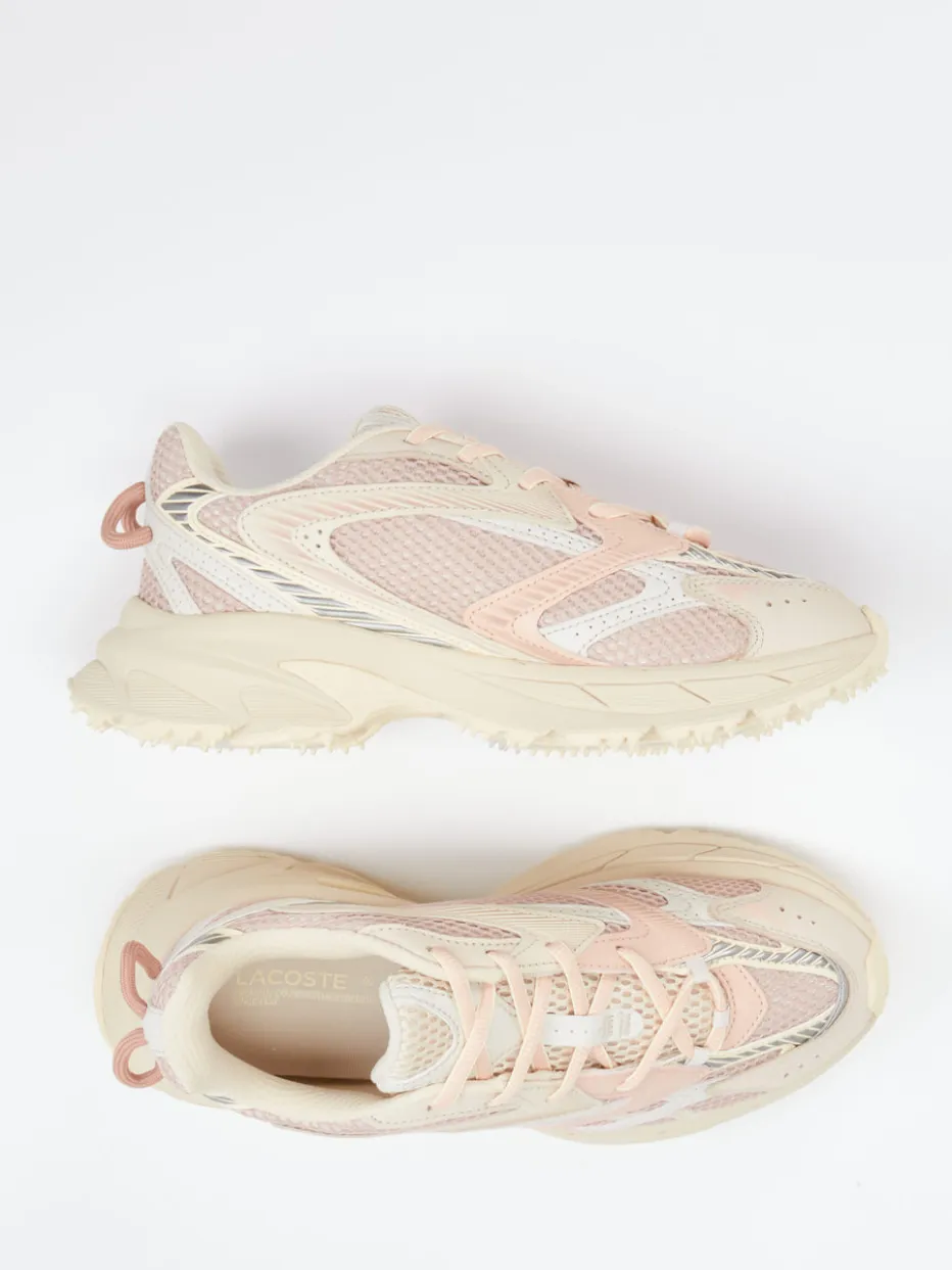Chunky trifft Pastell – markant & feminin.Der Damen-Sneaker von Lacoste kombiniert Freizeitästhetik mit angesagtem Streetstyle. Ideal für trendorientierte Looks im Alltag bietet der Schuh atmungsaktives Textil in Verbindung mit luftigem Mesh, unterstützt von tonalem Velours-Overlay. Die dominante Farbe Rosa trifft auf Nuancen in Cremebeige und Hellgrau. Reflektierende Elemente und eine geschwungene, stark profilierte Gummisohle im Chunky-Stil prägen die Silhouette. Das charakteristische Krokodil-Logo rundet das Design ab. Perfekt zu pastellfarbenen Sportsocken oder urbanen Athleisure-Outfits. Ein Fashion-Statement mit sportlichem Komfort und stilistischer Klarheit à la Lacoste.