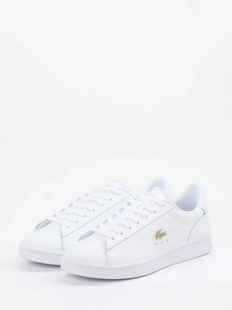 Stilvoll zurückhaltend.Der Low-Top-Sneaker von Lacoste vereint minimalistisches Design mit hochwertiger Verarbeitung. Für urbane Looks mit Anspruch konzipiert, überzeugt er im Alltag wie im Office. Das weiße Glattleder zeigt sich mit matter Oberfläche, veredelt durch goldfarbene Logostickerei und silberne Details. Seine klassische flache Silhouette mit Schnürverschluss und gepolstertem Einstieg unterstützt die clean-luxuriöse Anmutung. Effektvoll im Trend von „Quiet Luxury“ und „Clean Sneaker Look SS24“ positioniert. Harmoniert ideal zu schmalen Hosen oder smarten Chinos. Ein Schuh, der moderne Zurückhaltung mit markeneigener Raffinesse vereint.