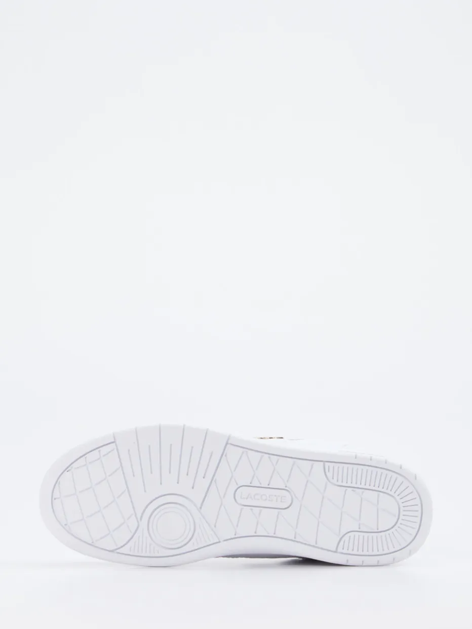 Minimalismus trifft auf goldene Raffinesse.Lacoste präsentiert einen eleganten Low-Top-Sneaker für Damen aus fein verarbeitetem Glattleder in strahlendem Weiß. Ob im Büro oder casual unterwegs – die klassische Form, Perforationen und goldfarbene Logo-Applikationen verleihen diesem Modell eine stilvoll cleane Ausstrahlung. Die glänzende Oberfläche und die weiße Gummisohle bieten ein komfortables Tragegefühl bei gleichzeitig urbaner Frische. Die Kombination aus sportlicher Silhouette und dezenten Metallic-Akzenten spiegelt aktuelle Streetwear-Trends wider. Lässt sich exzellent mit minimalistischen Outfits und weißen Socken kombinieren. Ein Sneaker mit sportlich-elegantem Charme – markentypisch reduziert und trendbewusst.