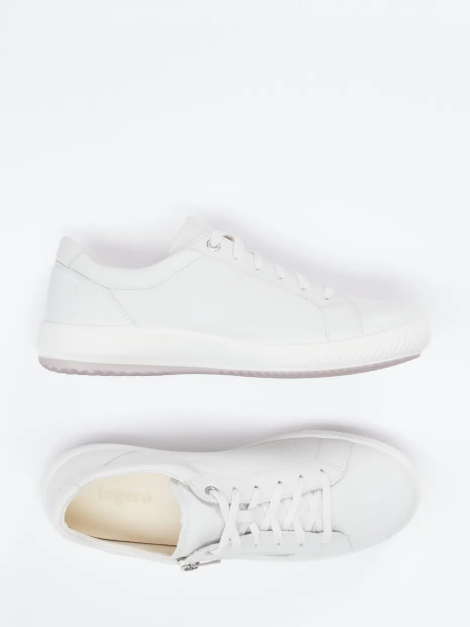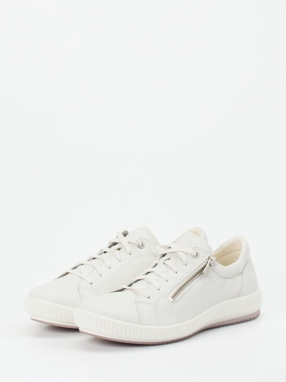 Leichtigkeit für jeden Tag.Legero präsentiert mit diesem Sneaker ein Modell für Damen, das Komfort und Stil vereint. Ob beim Stadtbummel oder im entspannten Office-Kontext – das genarbte Lammleder in Offwhite legt mit seiner weichen Haptik den Grundstein für ultrabequemen Laufkomfort. Die klassische, rund geschnittene Silhouette mit Ton-in-Ton Nähten wirkt harmonisch und zurückhaltend. Ein seitlicher silberfarbener Reißverschluss ergänzt die Schnürung funktional und optisch. Innen sorgt atmungsaktives Hightech-Mesh für angenehmes Fußklima. Der Look passt ideal zum Soft-Neutral-Trend der Saison. Ein durchdachter Alltagsbegleiter mit reduziertem Design und überzeugendem Komfortprofil.