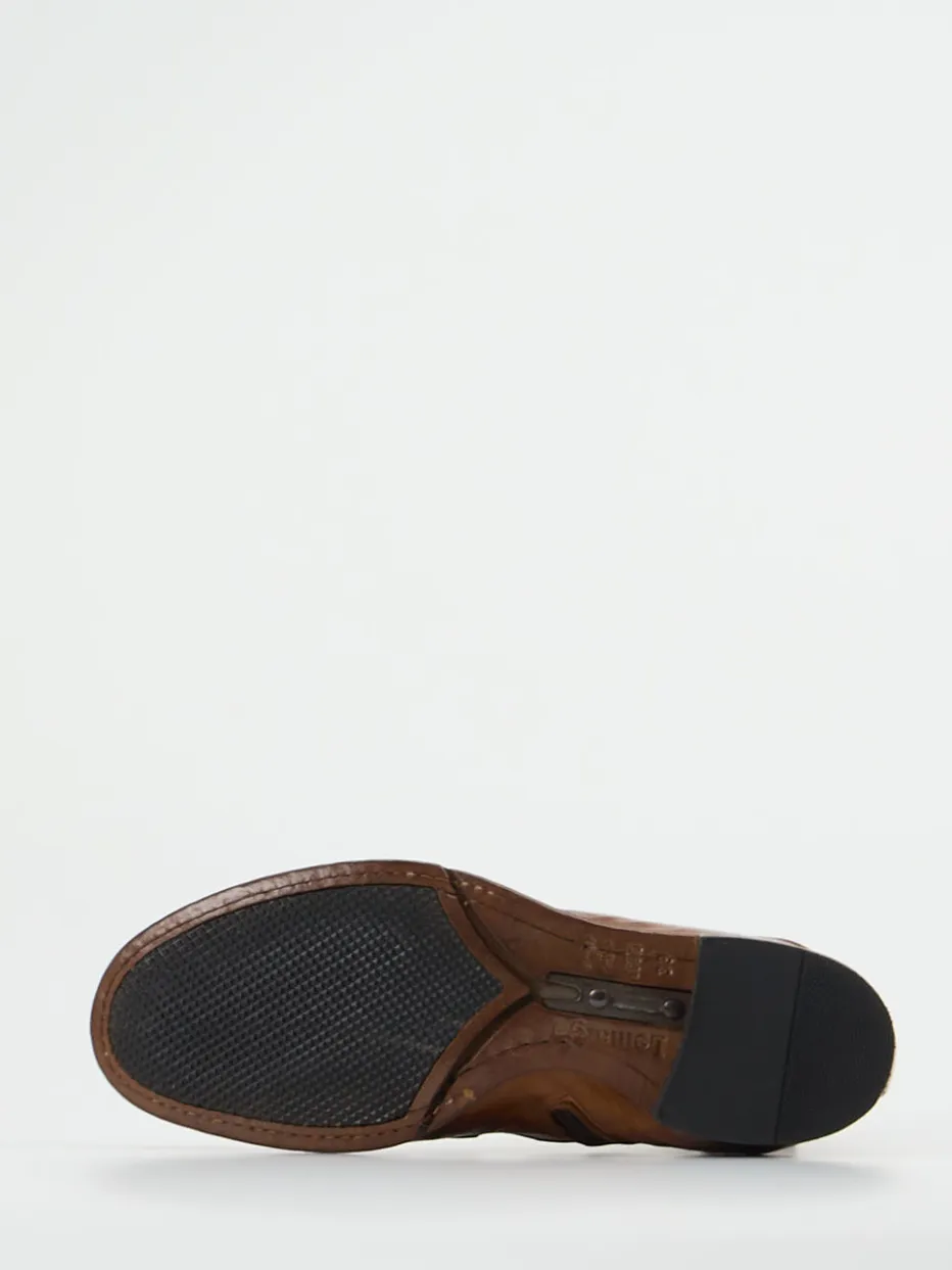 Handgearbeitetes Lammleder mit Vintage-Finish verleiht diesen Herrenschuhen einen eleganten Heritage-Charakter. Glänzende Oberfläche, präzise Schnittführung und funktionale Details vereinen Stil mit Komfort.