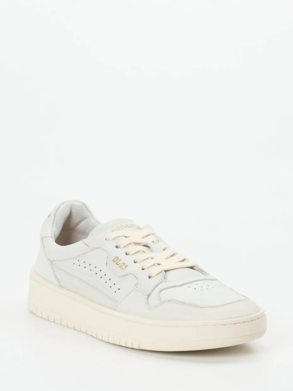 Der Sneaker überzeugt im Alltag mit weichem, genarbtem Glattleder in Off-White und dezenter Creme-Schnürung. Perforationen und gepolsterter Einstieg betonen den sportiven Komfort, während eine goldfarbene Logoprägung edle Akzente setzt. Die flache Silhouette, rutschhemmende Gummisohle und das wechselfreundliche Lederfußbett sorgen für pragmatische Alltagstauglichkeit. Ideal für entspannte Looks mit Slim-Fit-Jeans oder Oversize-Shirt. Das Design folgt ganz dem Quiet-Luxury-Trend der aktuellen Saison.