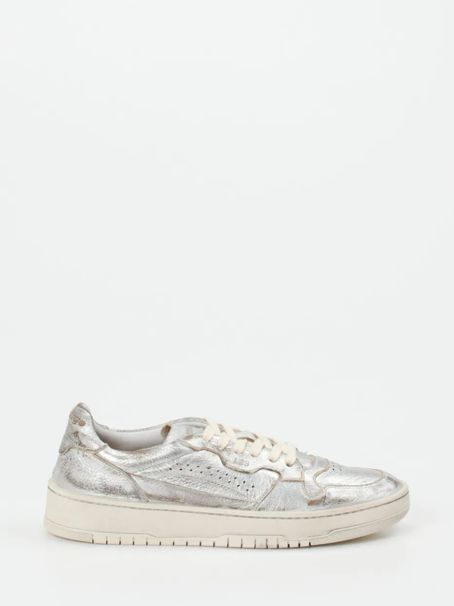 Für urbane Alltagsmomente mit Stil: Das genarbte Metallicleder in Silber überzeugt durch einen abgerockten Vintage-Finish. Klassisch abgerundet in der Low-Cut-Silhouette und akzentuiert durch Perforationen und cremefarbene Schnürsenkel, verleiht das Design jedem Streetstyle-Outfit eine moderne Note. Weiches Frotteefutter, gepolsterter Einstieg und ein lederbezogenes Wechselfußbett sorgen für hohen Komfort, während die robuste Gummisohle sicheren Halt bietet. Der Metallic-Look funktioniert besonders gut mit Wide-Leg Jeans oder silbernen Accessoires.