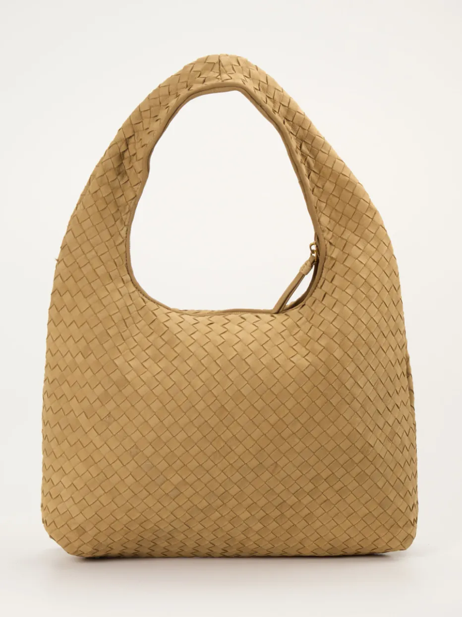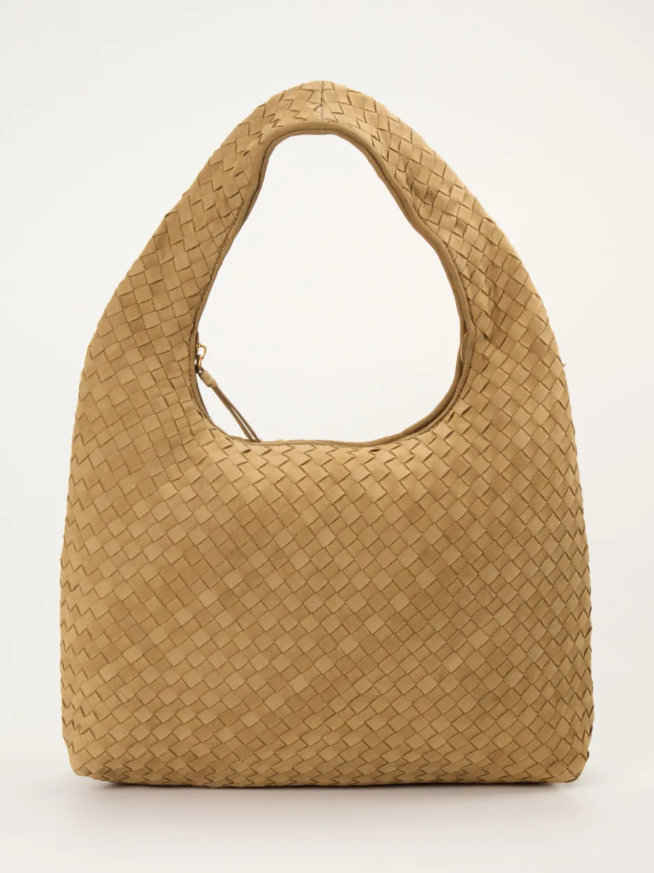 Edles Flechtleder in warmem Braun vereint sich mit minimalistischer Form zu einer Tasche, die sowohl im Alltag als auch im Business stilvoll begleitet.