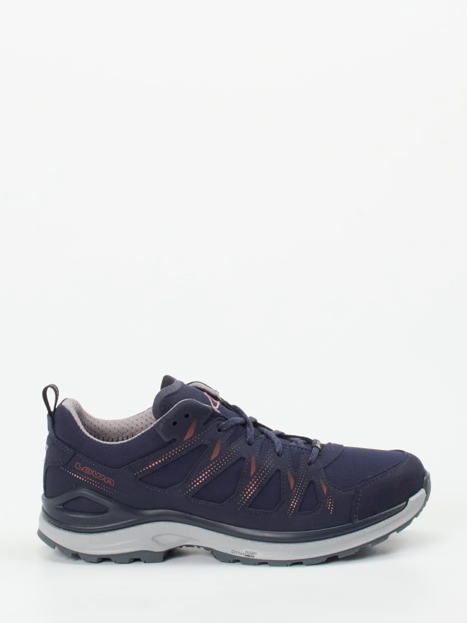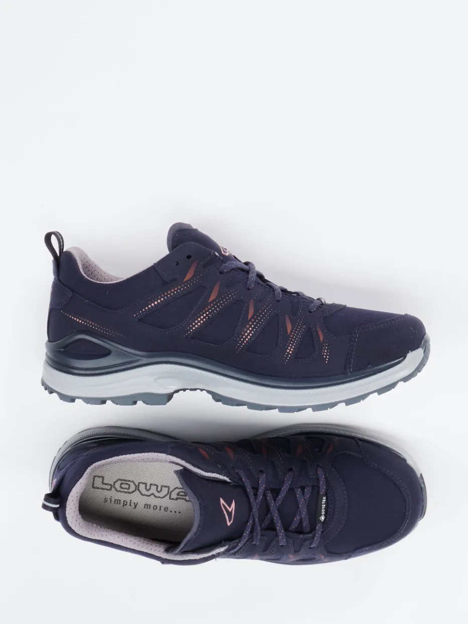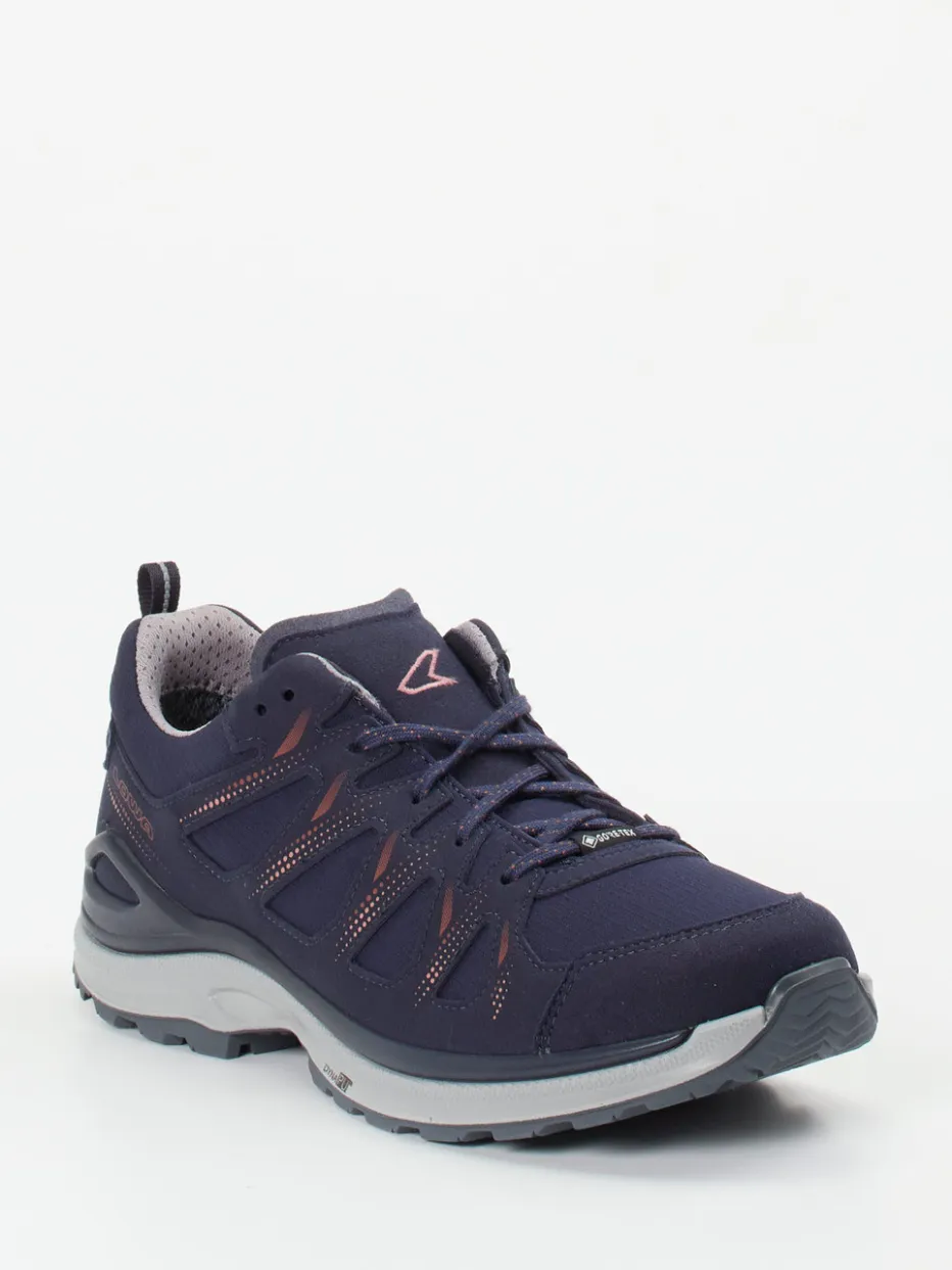 Technik trifft Komfort in sportlichem Look.Der Damen-Wanderschuh von Lowa vereint Performance und Design auf moderne Weise. Ob auf Wanderpfaden oder im aktiven Alltag: Das wind- und wasserdichte Material mit integrierter GORE-TEX® Membran hält die Füße angenehm trocken. Das sportlich-dynamische Obermaterial besteht aus matt strukturiertem Mesh und Synthetik in Dunkelblau mit altrosafarbenen Kontrasten. Eine griffige PU-Profilsohle bietet sicheren Halt, während reflektierende Details und weicher Einstieg für Tragekomfort und Sichtbarkeit sorgen. Zuglasche und farblich akzentuierte Nähte setzen funktionale Akzente und verweisen auf stilistische Einflüsse urbaner Performance-Wear. Ideal kombinierbar mit einer Funktionsjacke oder sportlichem City-Look. Lowa steht für hochwertige Outdoor-Innovation mit maximalem Komfort.