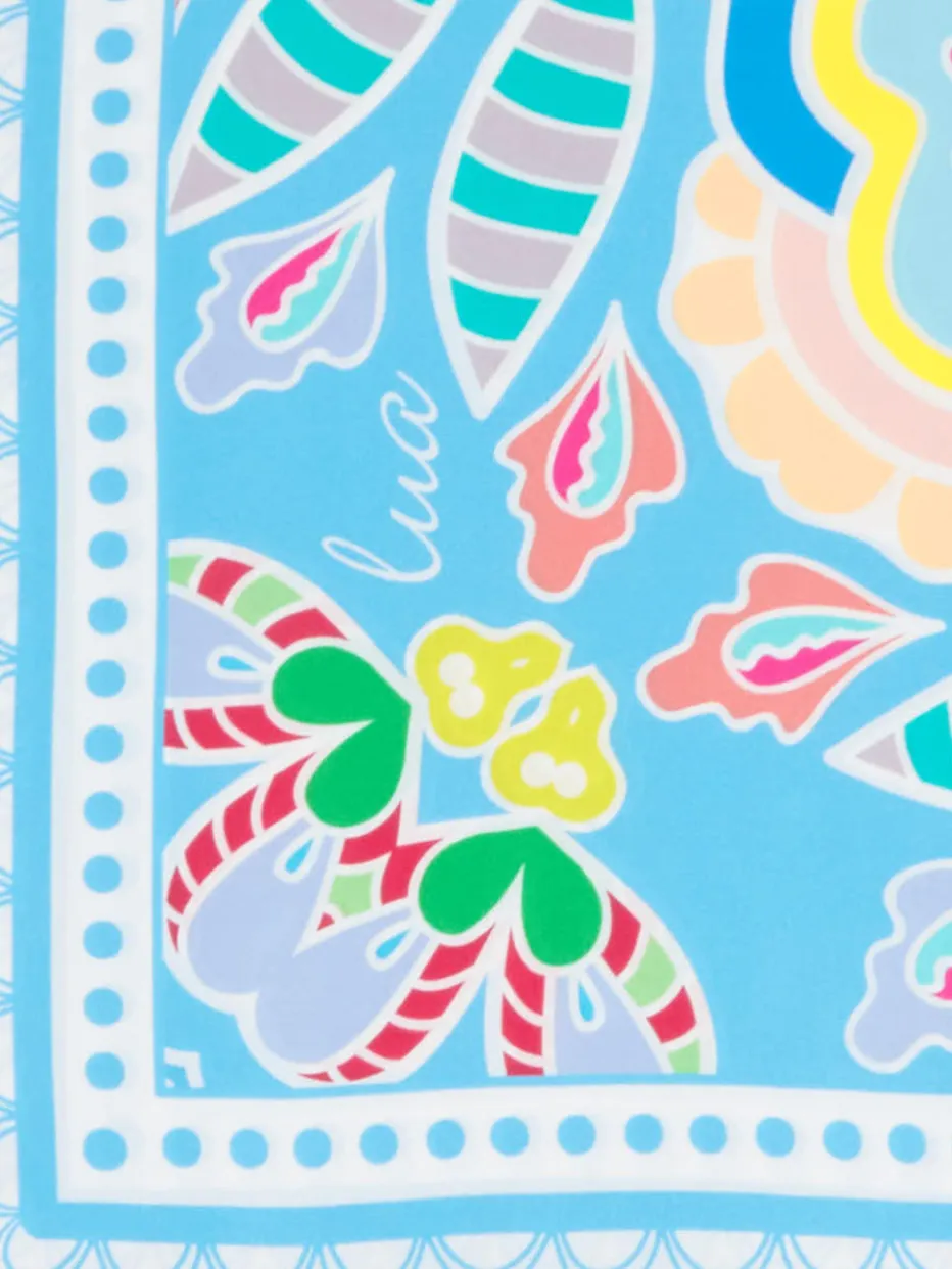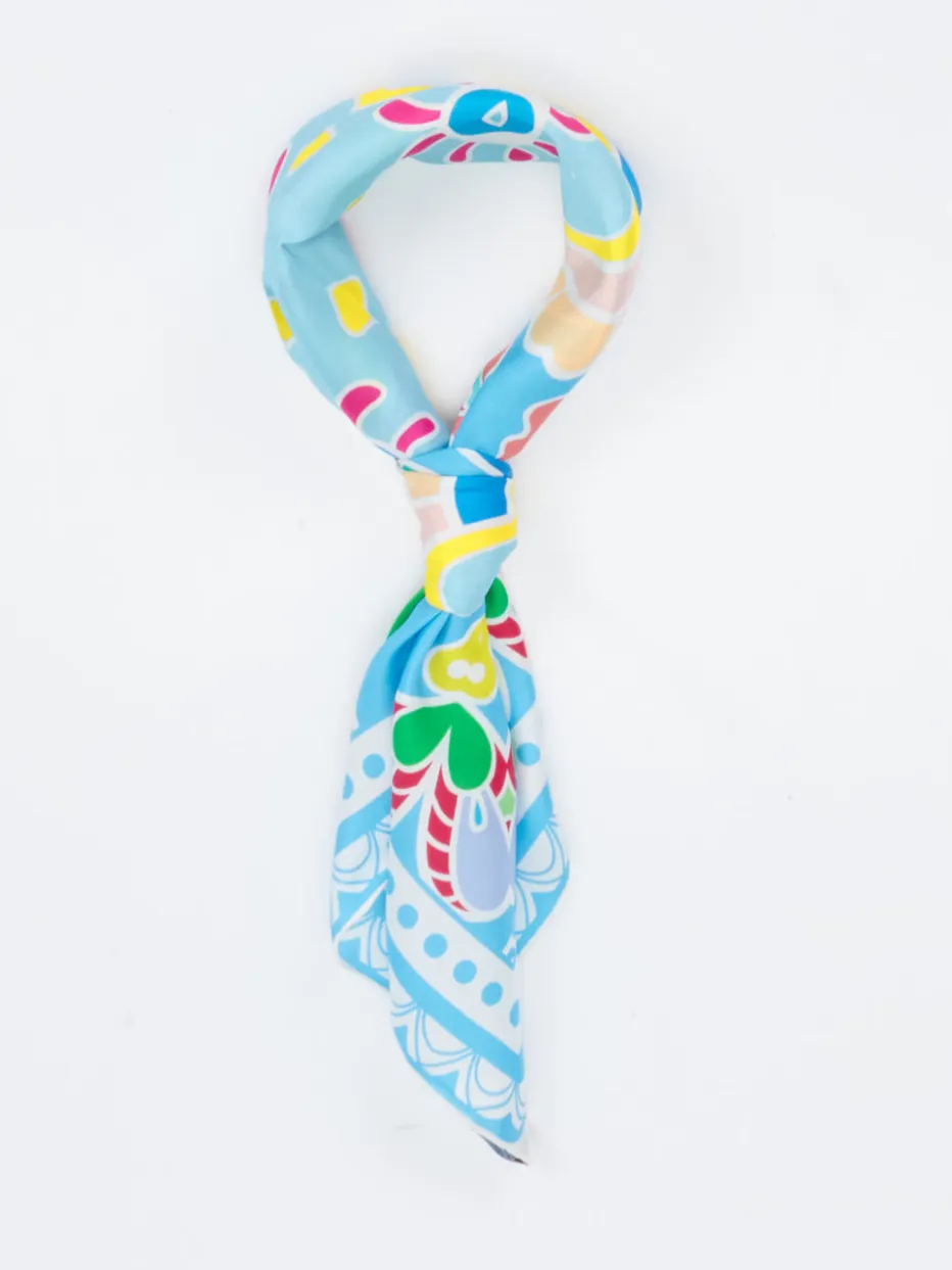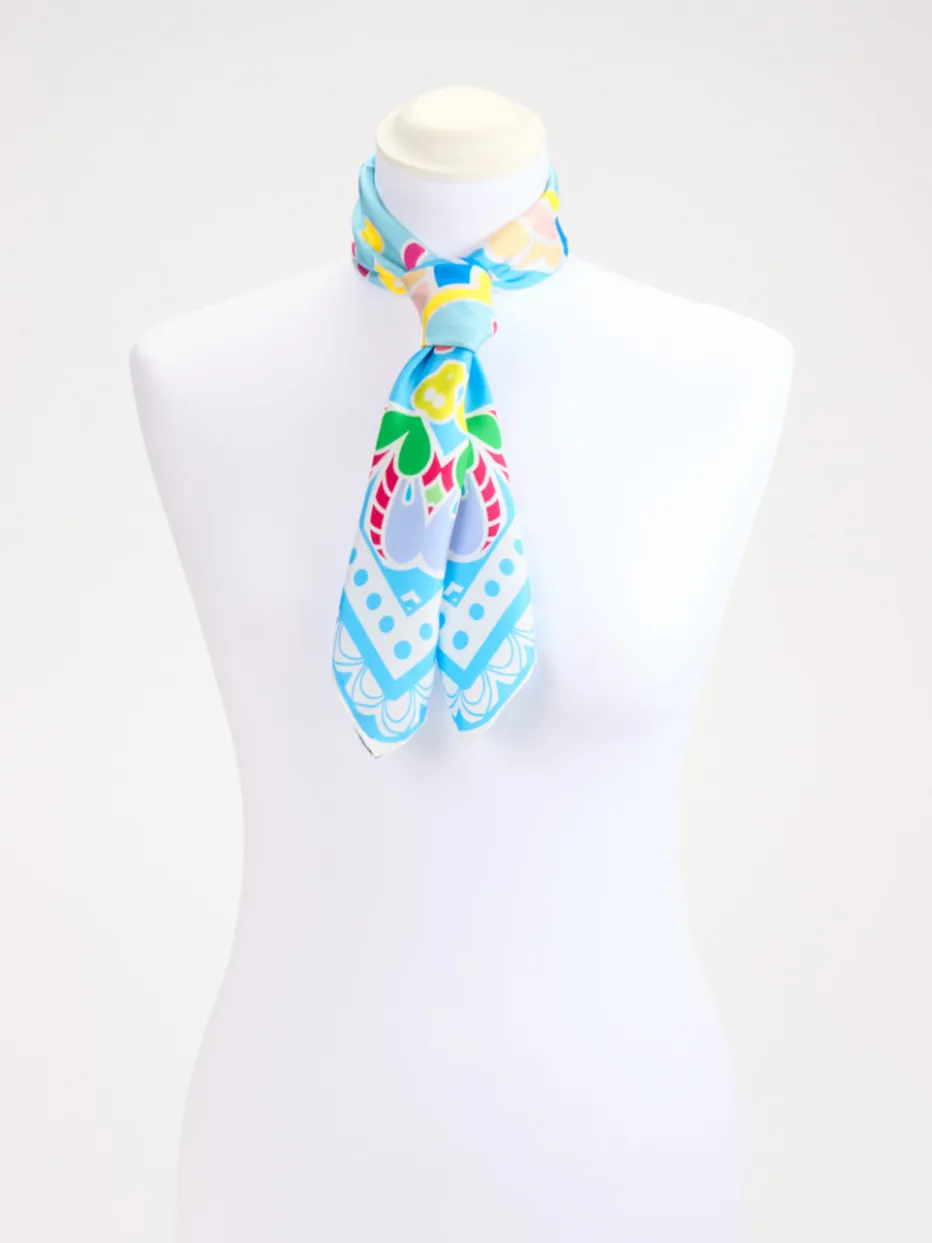 Mit seinem intensiv schimmernden Finish und lebendigem Paisley-Design ist dieses quadratische Tuch ein stilvoller Akzent für expressive Sommer-Looks.