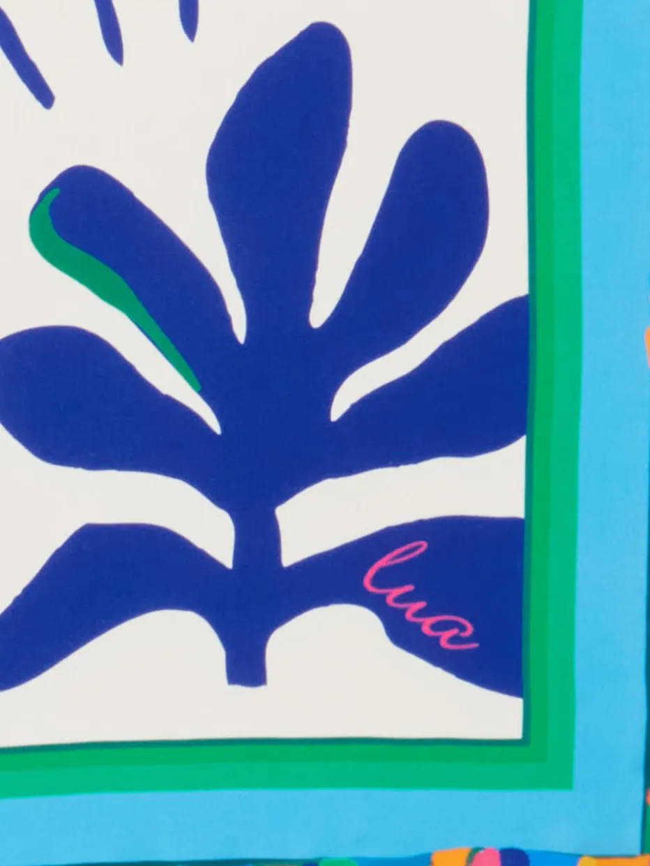 Die seidig-glänzende Oberfläche und der kraftvolle Grafikprint machen dieses Tuch von Lua Accessories zum stilvollen Sommer-Akzent für Hals, Haar oder Tasche.