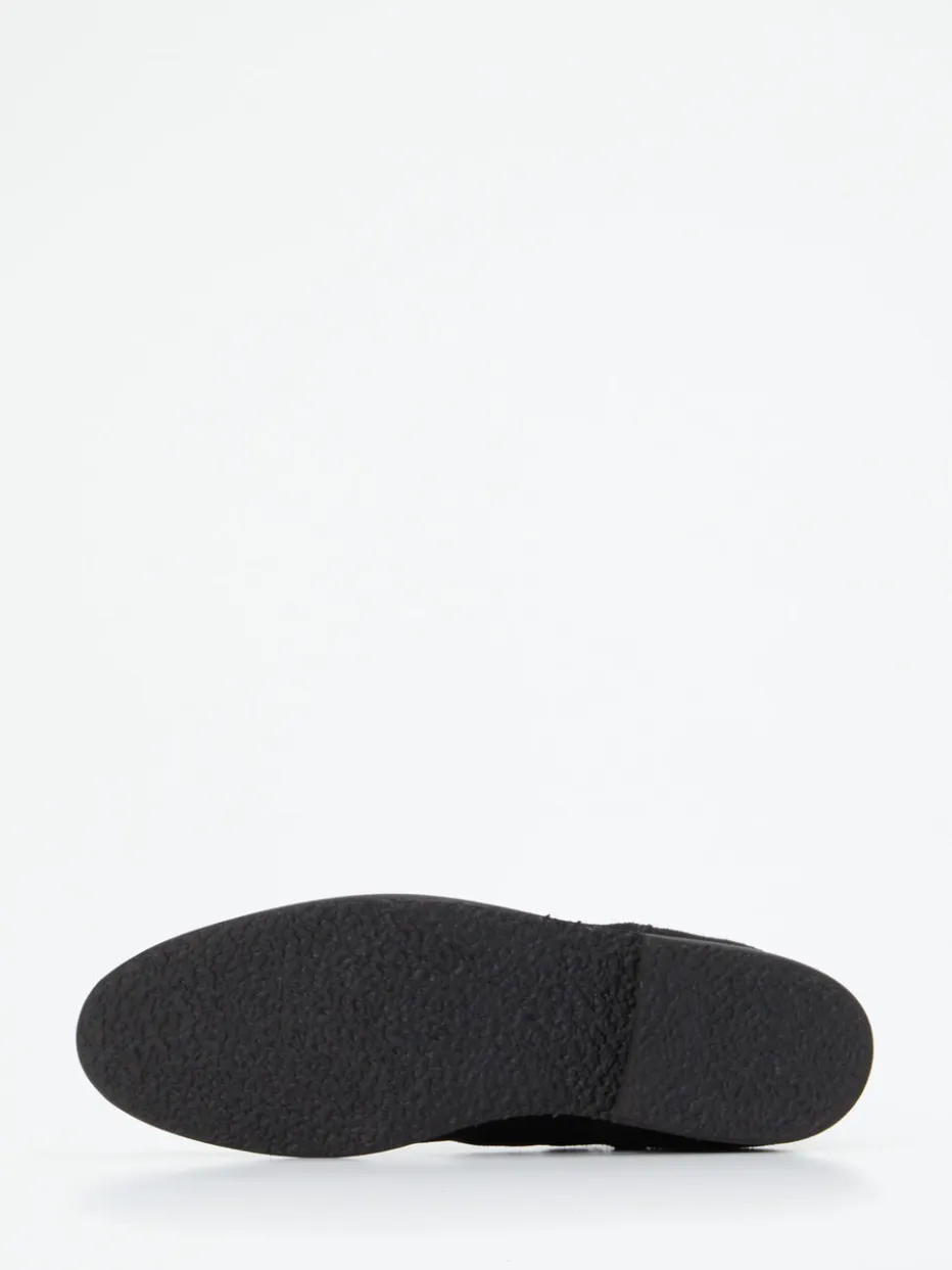 Eleganz für jeden Tag.Ludwig Reiter präsentiert klassische Chelsea Boots für Damen. Ob für den Büroalltag oder stilvolle City-Looks – das schwarze Veloursleder mit samtiger Oberfläche wirkt edel und zurückhaltend zugleich. Elastikeinsätze an den Seiten und die gemusterte Textil-Zuglasche sorgen für optimale Passform und Komfort beim Einstieg. Die alltagstaugliche Gummisohle mit flachem Absatz unterstreicht das minimalistische Design und bietet Flexibilität bei jedem Wetter. Inspiriert von britischer Tradition trifft das Modell genau den aktuellen „Quiet Luxury“-Trend. Hochwertige Handwerkskunst trifft auf puristische Modernität – typisch Ludwig Reiter.