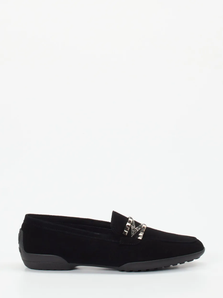 Dieser Damen-Loafer von Mania kombiniert italienisches Handwerk mit modernem Design – edles Veloursleder trifft auf eine dekorative Metallapplikation und sorgt für stilbewussten Komfort im Alltag.
