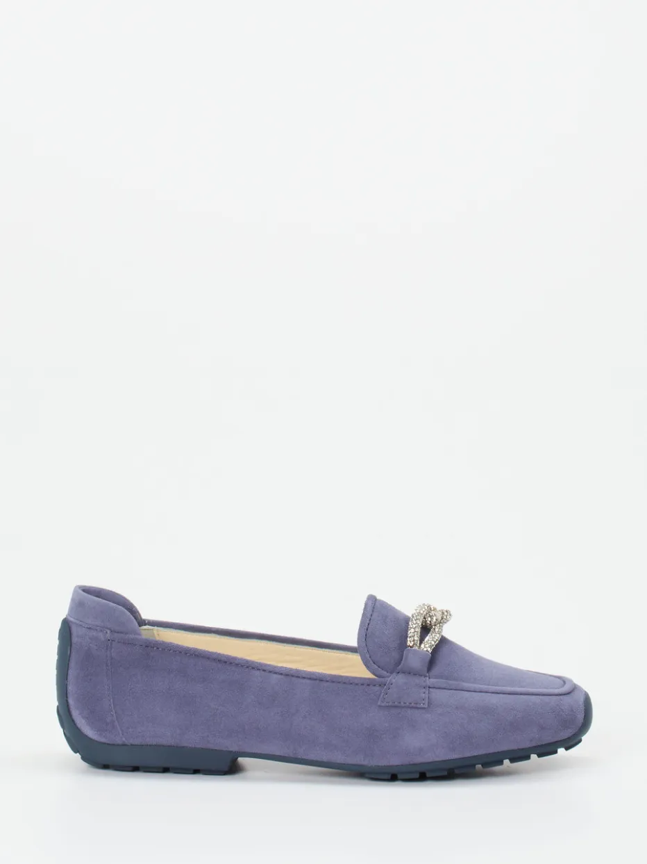 Ein edler Damen-Loafer mit ruhiger Farbigkeit und funkelndem Detail: Hochwertiges Veloursleder verbindet sich hier mit moderner Leichtigkeit – ideal für gepflegte Alltags- und Business-Looks.