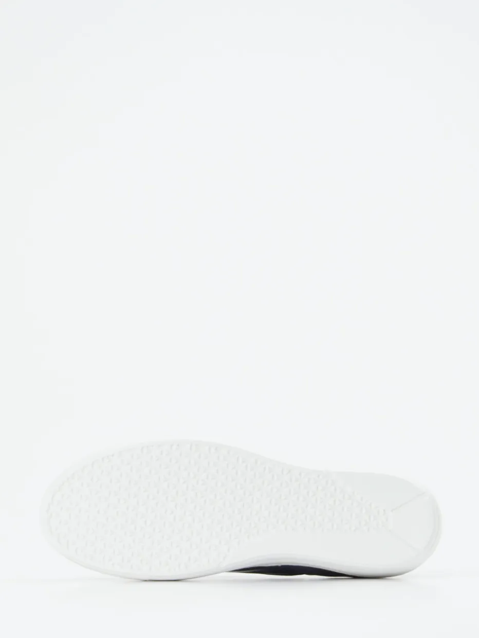 Glanz trifft Struktur.Mania präsentiert einen Slip-On Sneaker, der durch sein stilvolles Design und hohen Tragekomfort überzeugt. In entspannten Alltagssituationen bietet dieser Damenschuh die perfekte Balance aus Bequemlichkeit und modischer Ausdruckskraft. Das blaue Velourleder erhält durch die gesteppte Textilfront mit Strassperlen und das glänzende Finish eine besonders edle Note. Die runde, kompakte Silhouette harmoniert mit der weißen Plateau-Gummisohle, die für Trittsicherheit sorgt. Elastische Einsätze und eine praktische Zuglasche erleichtern den Einstieg. Stilistisch zwischen Streetwear und minimalistischem Chic einsetzbar – ideal kombiniert mit Steppjacke oder Crossbody-Bag. Ein Komfortsneaker mit luxuriösem Flair und markentypischer Liebe zum Detail.