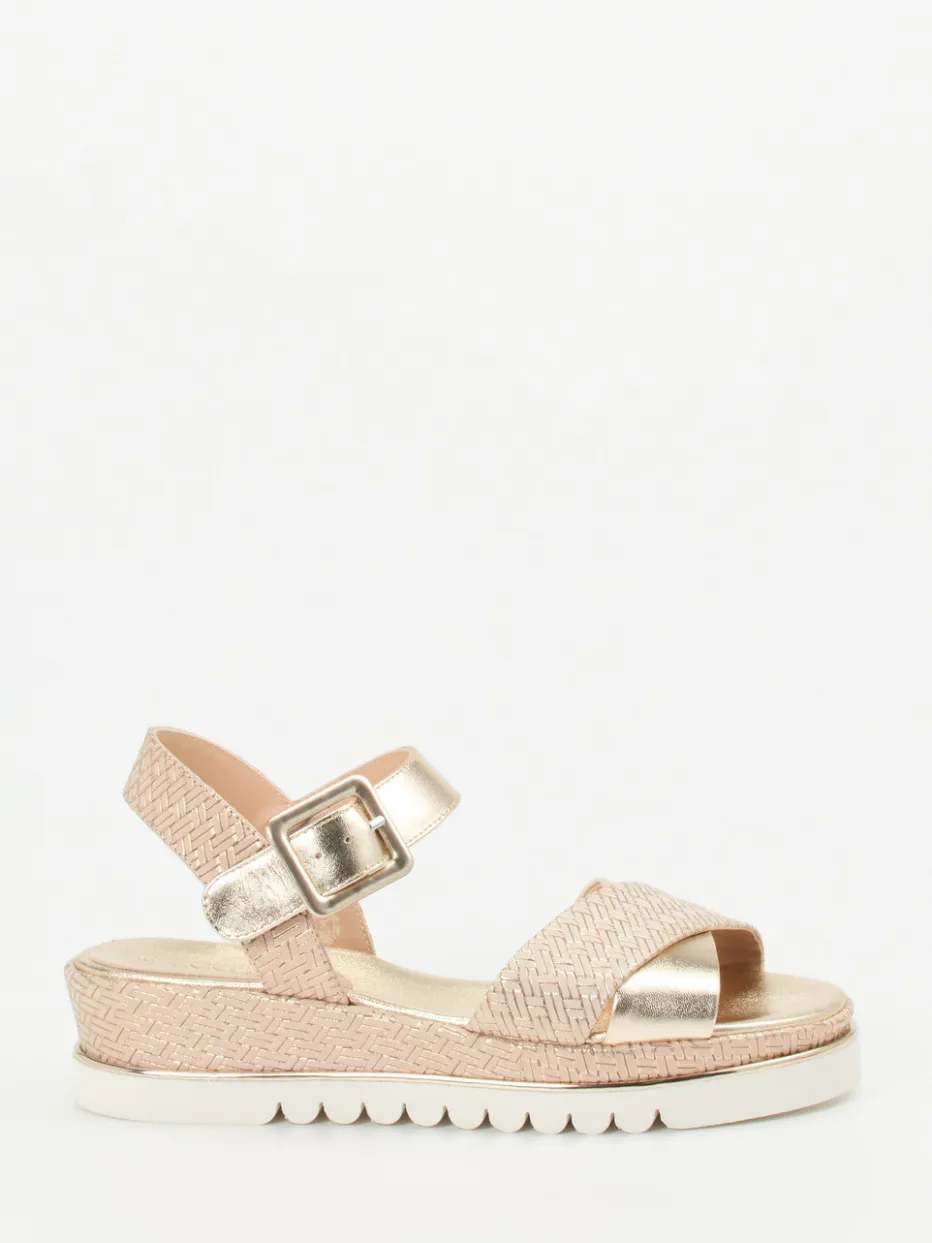 Damen Mannori – Keilsandalette aus Metallicleder Rosé-Beige