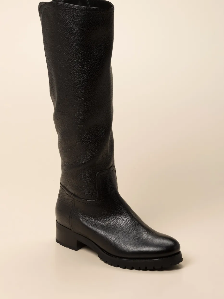 Der kniehohe Stiefel von Mannori verbindet hochwertiges Kalbleder mit wärmendem Lammfellfutter und klarer Reitstiefel-Silhouette. Made in Italy mit klassischer Ausstrahlung und hohem Tragekomfort.